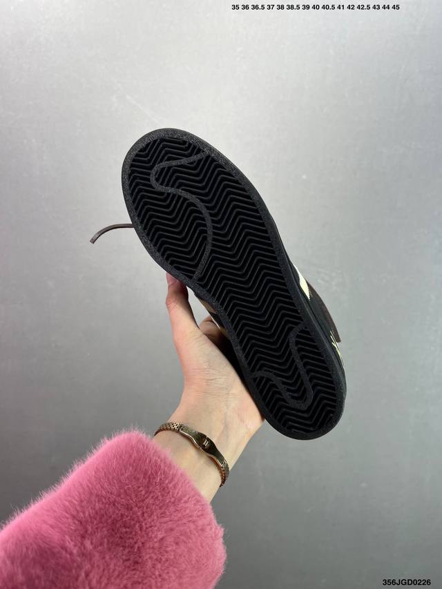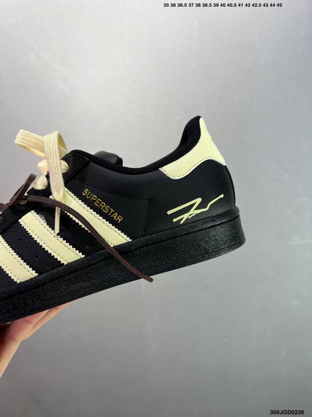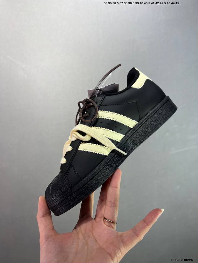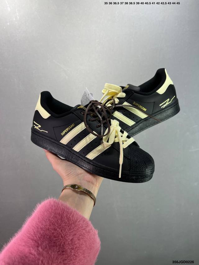 Ad Originals Superstar 经典复古贝壳头板鞋 Eg4959 诞生于1969年 是第一双将全皮面鞋 身与橡胶鞋头结合在一起的低帮篮球鞋 Superstar最开始 是作为高帮篮球鞋Pro Model的低帮版本而出现的 但因为其独特和醒目的橡胶鞋头造型而让大家熟知 被大家形象地称为”Shelltoe“贝壳头 在70年代的美国职业篮球场上 接近3 4的Nba球员都将这双Superstar作为场上用鞋 80年代之后 经过不断的改良和发展 Superstar逐渐成为横跨时装、音乐、街头文化、休闲和