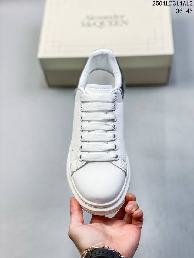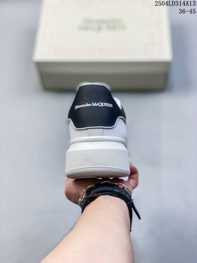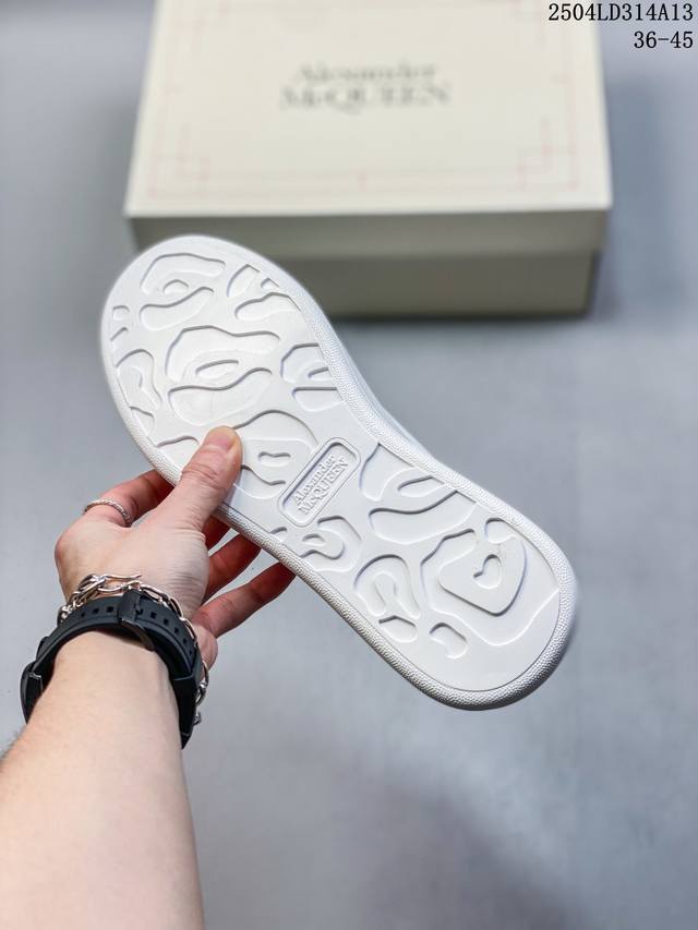 Alexander Mcqueen 亚历山大麦昆 男女鞋广东原产品质,采用丝绸硬质小牛皮鞋面材质,内外超软小羊皮贴脚透气及超软Pu脚感乳胶物料鞋,外置原抽真空高密度增高底意大利高奢品牌-亚历山大 麦昆Alexander Mcqueen Oversized Sneakers 低帮时装厚底休闲运动小白板鞋