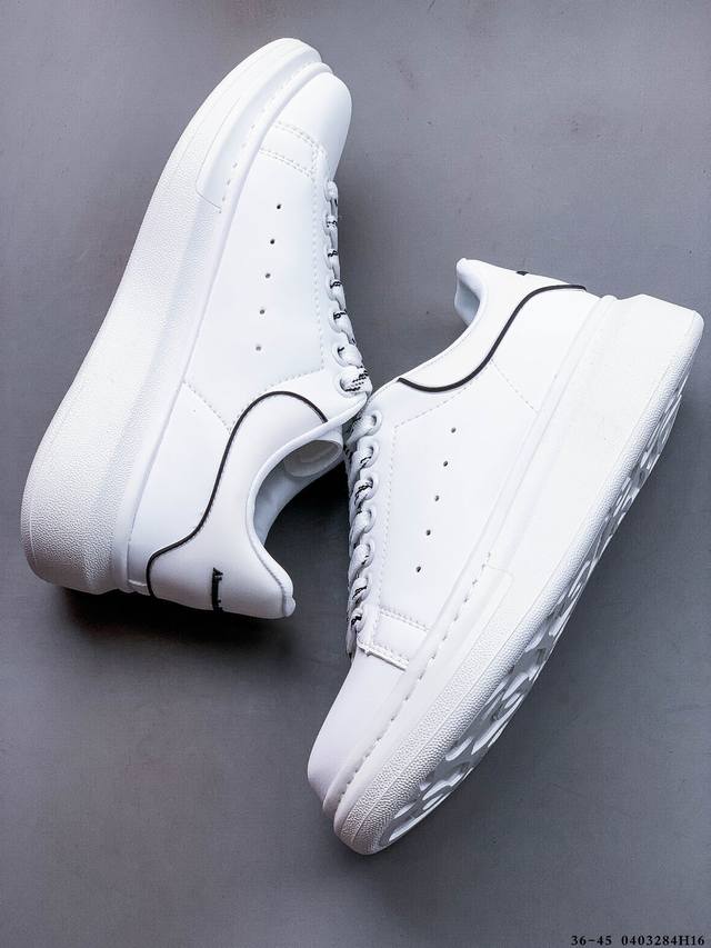 Alexander Mcqueen 麦昆 经典款 想不出有任何理由不收它!面料采用进口丝绸亚光原版牛皮 最新材料 水染羊皮内里,牛皮垫脚 原版大底 回弹度极佳 耐磨又舒适 鞋底厚4.5Cm