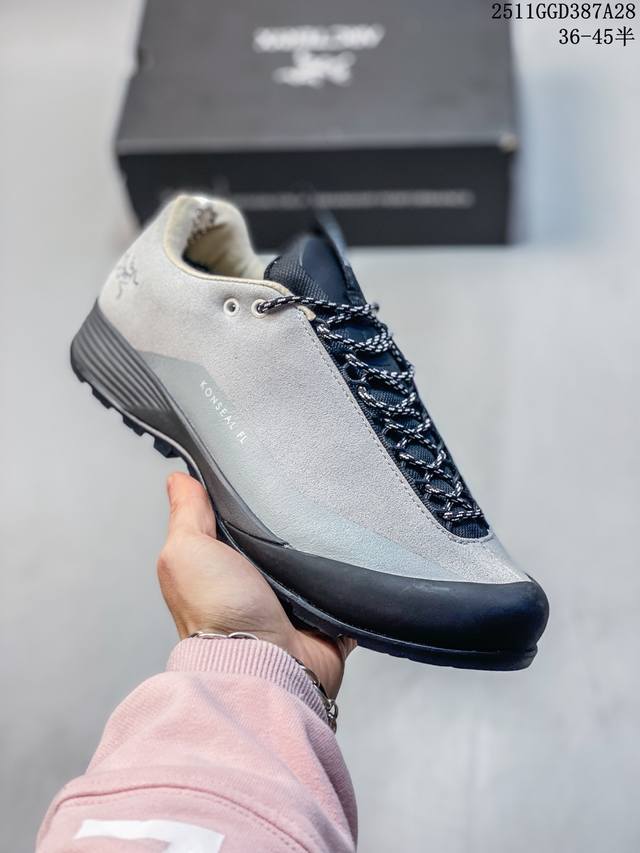 Arc’ Teryx 始祖鸟 Konseal Lt 轻量防滑轻便耐磨低帮越野跑步鞋 DDD 利用先进的技术、更轻但可靠耐用的材料和高度专注的设计流程,我们创造了我们最轻的接近鞋 Konseal Lt。它专为在您携带背包和攀爬装备时覆盖崎岖的地面而设计,提供足底支撑和保护、应对不断変化的地形的敏捷性以及 Vibram Megagrip 外底的自抓地力。内里提供赤足舒适感,鞋跟可平折,因此您可以在系绳或露营时将其作为木屐穿着 DDD 11Ggd387A28 DDD