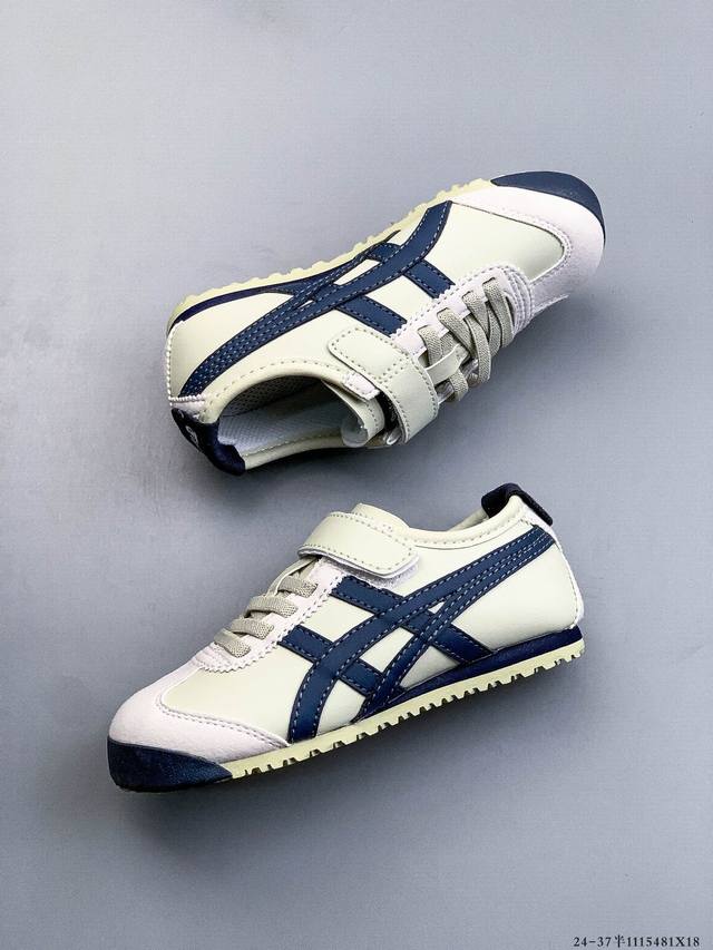 Asics 亚瑟士 Onitsuka Tiger 鬼冢虎 阿斯克斯 皮面原装四联吊牌 中底纸板钢印 日系轻便运动休闲小童鞋 1115481X18