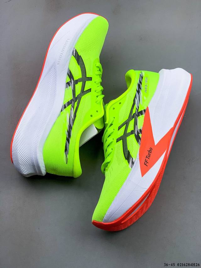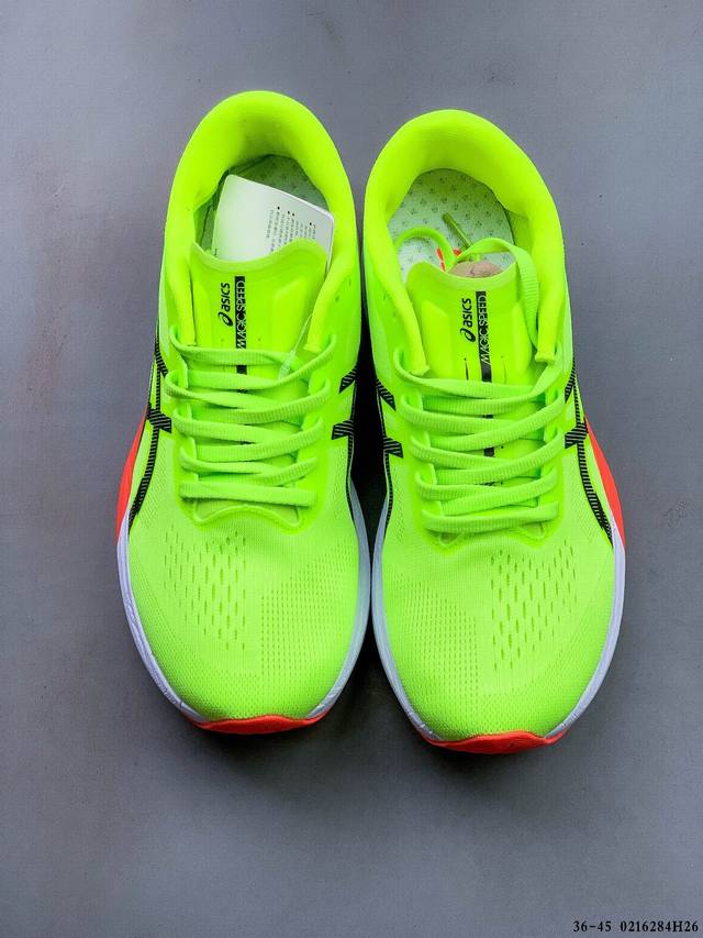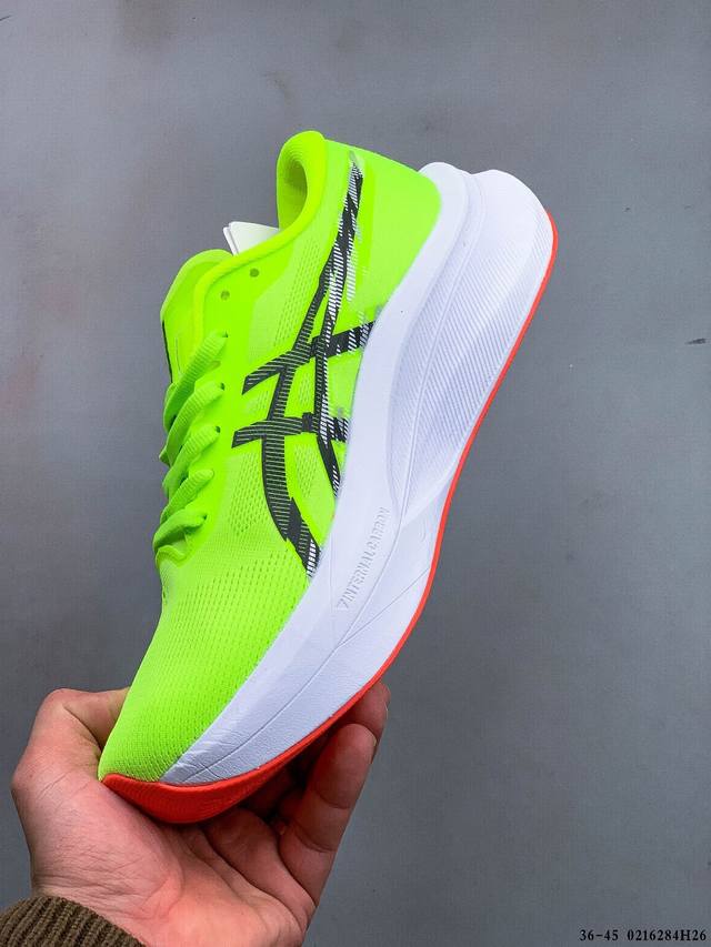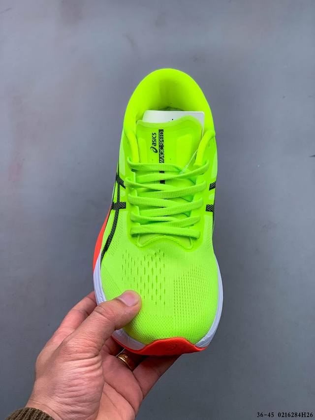 / Asics 亚瑟士Magic Speed 4稳定跑鞋鞋面采用双层提花网面设计,提高包裹性和透气性,后跟搭载稳定系统科技T-Gel提升整体支撑力和结构感,减少对身