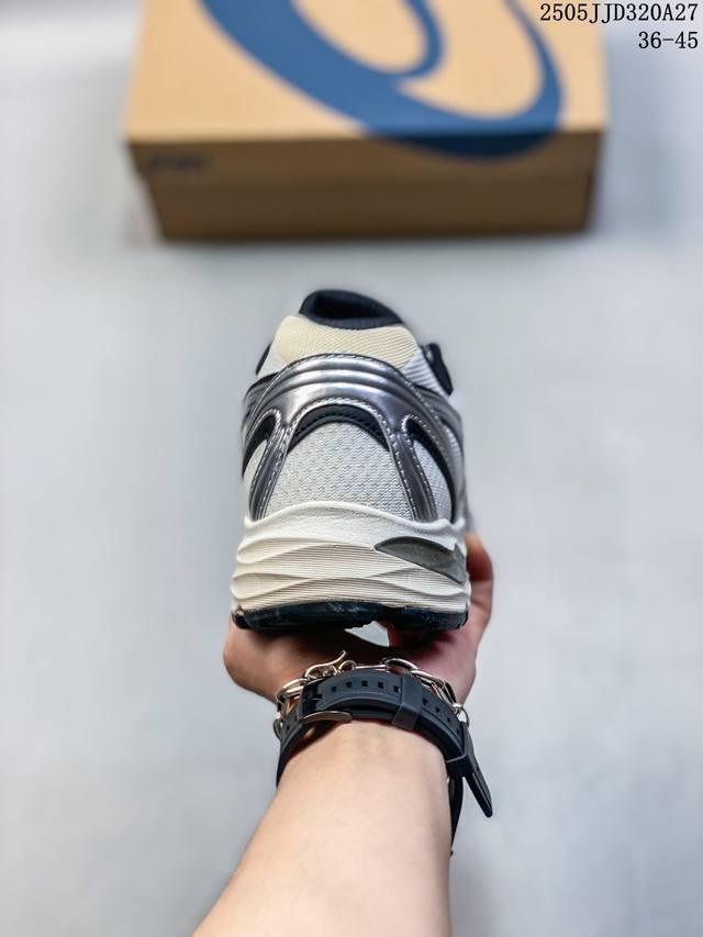 整双鞋在鞋面部分选用网眼布与皮革相互连接 在鞋面银色金属质感的线条中 Asics 品牌标志性的虎爪 Logo 出现在鞋身侧面 既展现出复古美感 又加深了整双鞋的层次感
