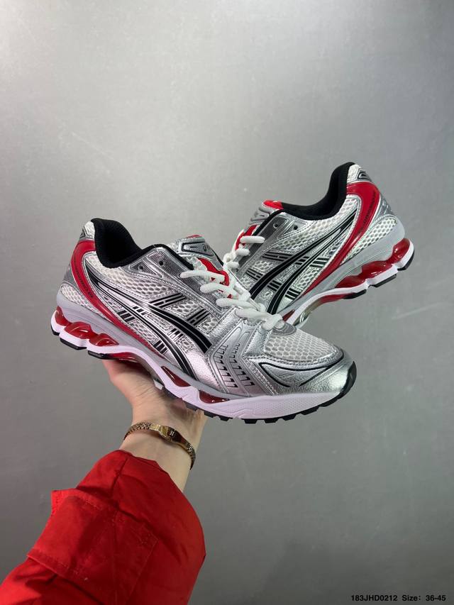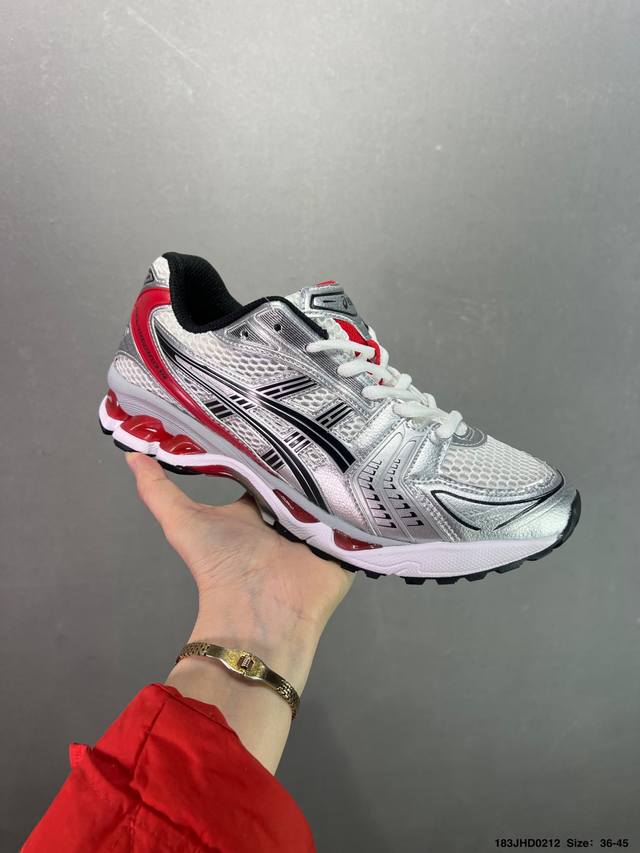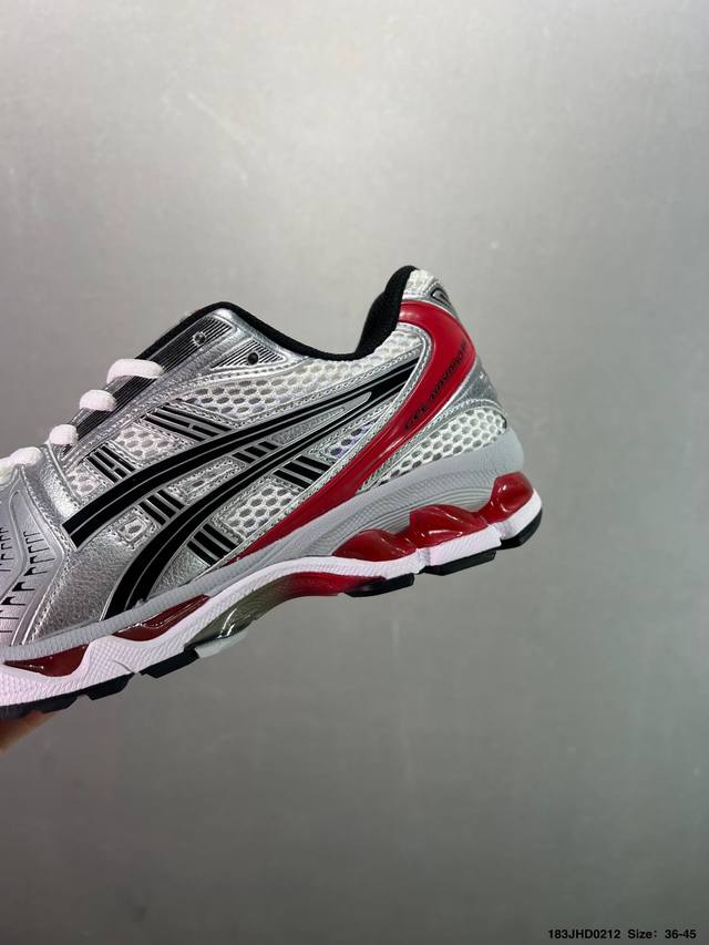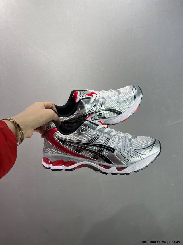 亚瑟士系列轻量缓震休闲运动跑步鞋 设计师 Hidenori Yamashita 以 Flash 一词为灵感,创造出未来感金属色鞋面,改造升级内在性能,由内而外全面革新,为 Gel-Kayano 家族传承及经典跑鞋文化的延续,创下里程碑式作品。Asics Gel Kayano 14 跑鞋重新诠释了复古的跑步形状,并以其 2000 年代后期的美学理念重新铺装,银色与蓝色的鞋面极为高档.网面铺陈与鞋面、鞋头多处细节位增添了透气性。Asics Gel Kayan
