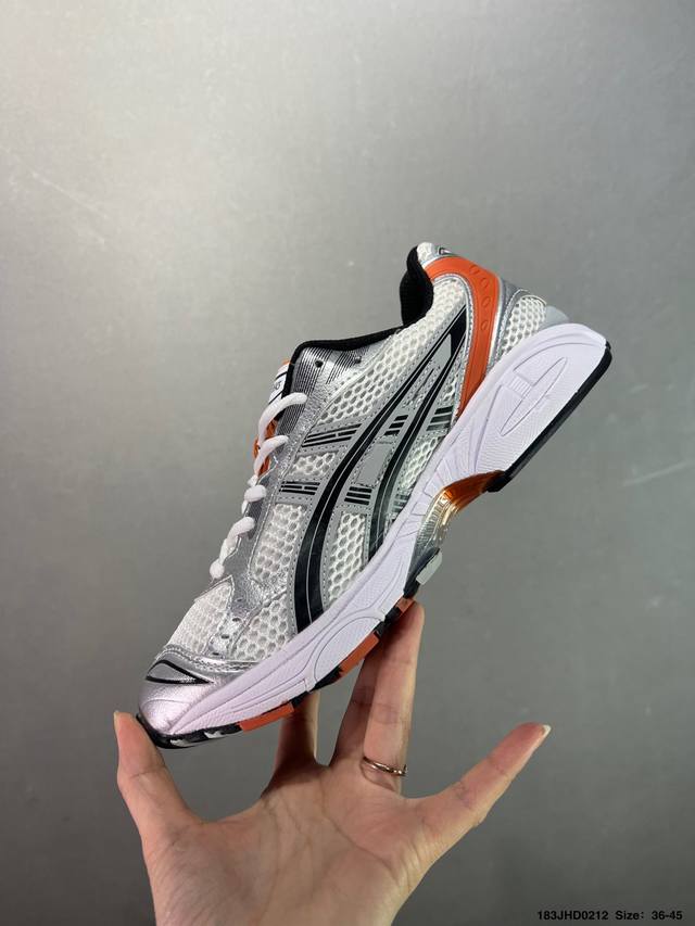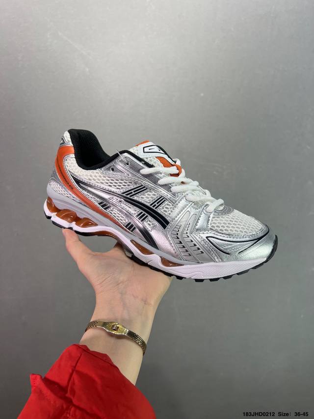 亚瑟士系列轻量缓震休闲运动跑步鞋 设计师 Hidenori Yamashita 以 Flash 一词为灵感,创造出未来感金属色鞋面,改造升级内在性能,由内而外全面革新,为 Gel-Kayano 家族传承及经典跑鞋文化的延续,创下里程碑式作品。Asics Gel Kayano 14 跑鞋重新诠释了复古的跑步形状,并以其 2000 年代后期的美学理念重新铺装,银色与蓝色的鞋面极为高档.网面铺陈与鞋面、鞋头多处细节位增添了透气性。Asics Gel Kayan