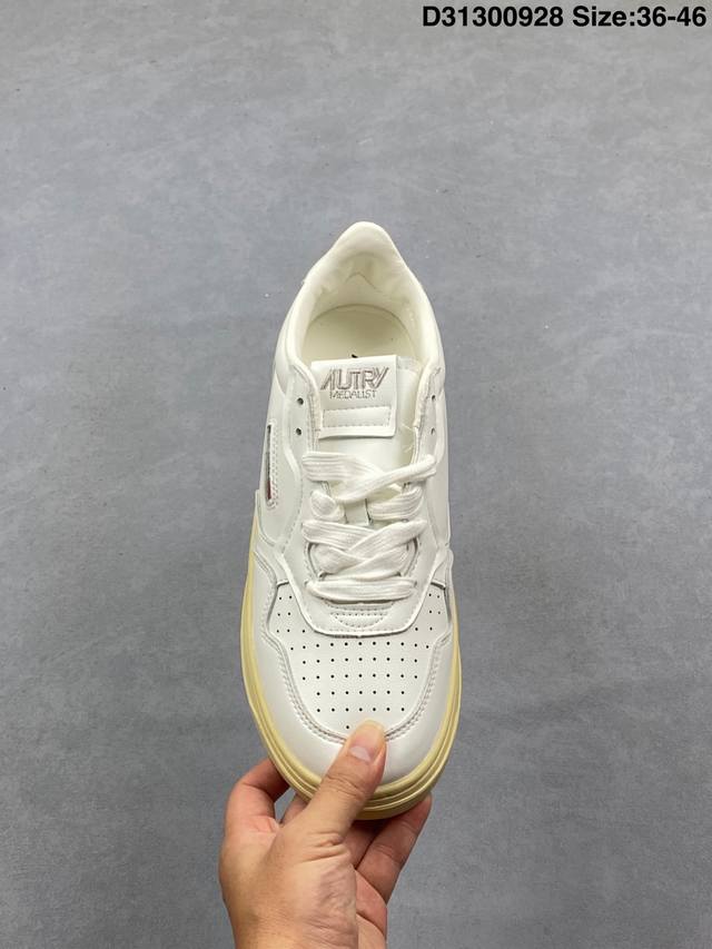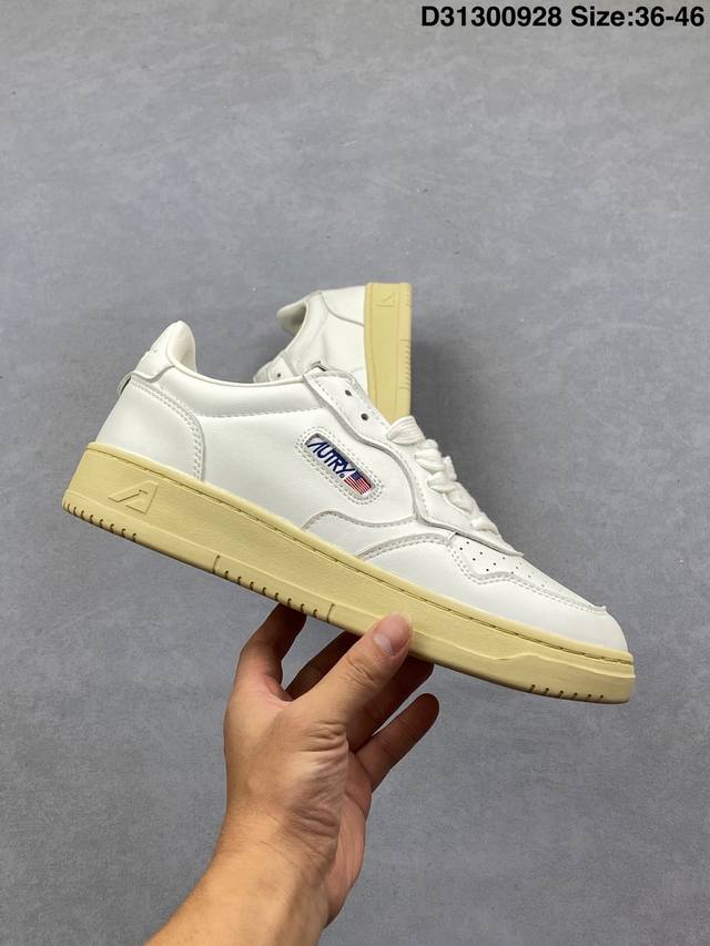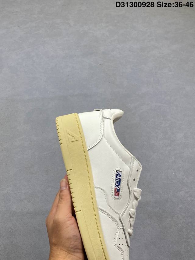 Autry 美国知名运动品牌 白黑 皮革低帮系带圆头时尚板鞋 Autry以其经典的白色网球运动鞋而闻名,既充满了德州风情又不乏永恒魅力。每只鞋款的侧面均饰有美国国旗,复古的造型延续了品牌的80年代款式,备受当代人喜爱。我们的精选系列包括Medalist低帮鞋、中帮运动鞋以及Dallas 鞋款,从淡粉色、单色和原色调,应有尽有。