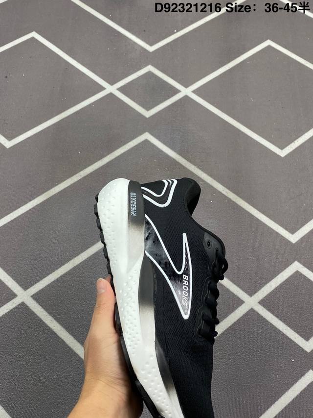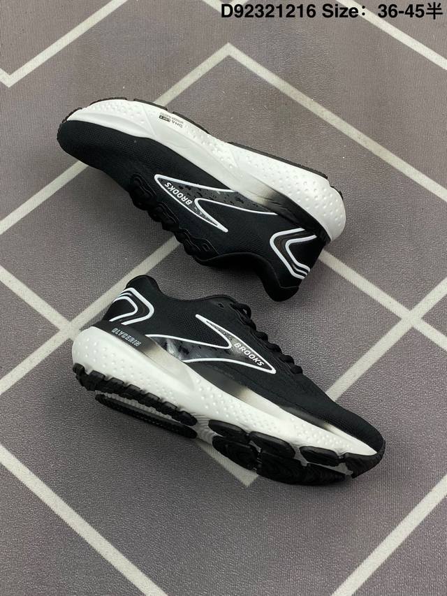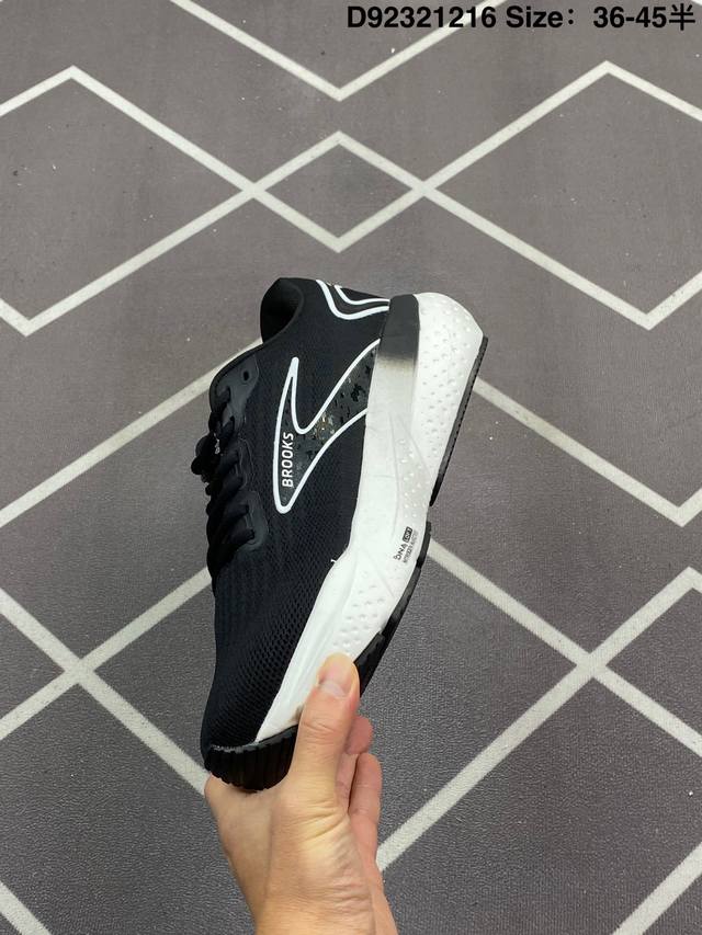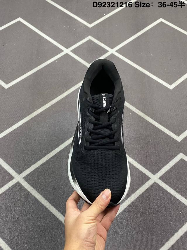 Brooks布鲁克斯 Glycerin Glycerin 21运动鞋 缓震慢跑鞋 老爹鞋,注入氮气之后的超凡缓震体验。穿过布鲁克斯的伙伴都知道,布鲁克斯的鞋面已经记不清多少年再也没换过了,造型也是很长时间没改变过,依旧是工程网布鞋面,柔软舒适,前掌鞋楦老传统,偏宽,但是保证了脚趾上下空间的灵活性。从鞋舌处开始到后跟设置大量的海绵填充,包裹锁定到位还很舒服,不同于别的品牌的是,布鲁克斯用的材料导热性很快,虽然厚,看似也闷,但是很凉快。全掌的Dna Loftv3氮气发泡材料,外底橡胶硬度大而且超厚,耐磨性强,