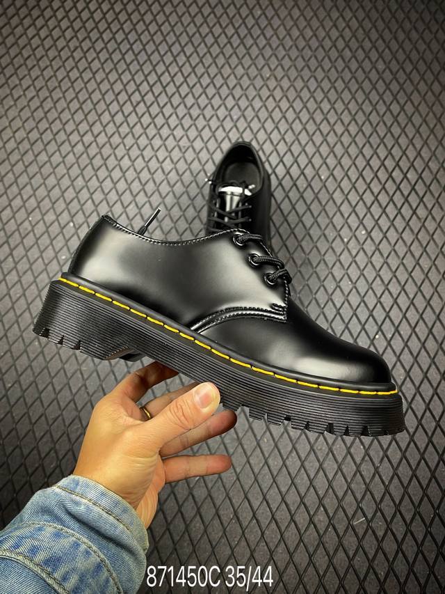 Dr.Martens 马汀博士1461经典低帮亮面系带生活休闲鞋 马汀博士作为一个具有独特魅力的品牌 吸引了一群各具特色、而又崇尚本真精神的人 他们主张表达自我 他们每一个人都是世问独特的存在 从风格来看 马汀博士极简的鞋型轮廓 使鞋靴能轻松融入穿着者的造型 从而形成独具特色的风格 从实用性来看 耐穿舒适的体验感 为马汀博士成为街头潮流奠定了基础 从情感方面来看 这些具有辨识度的鞋子还是独特态度和权力赋予的象征