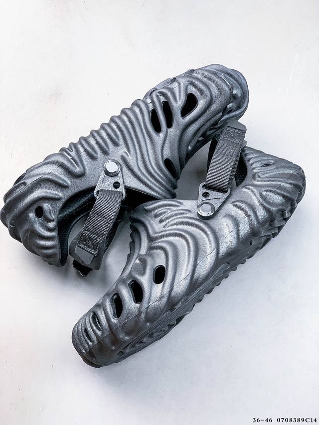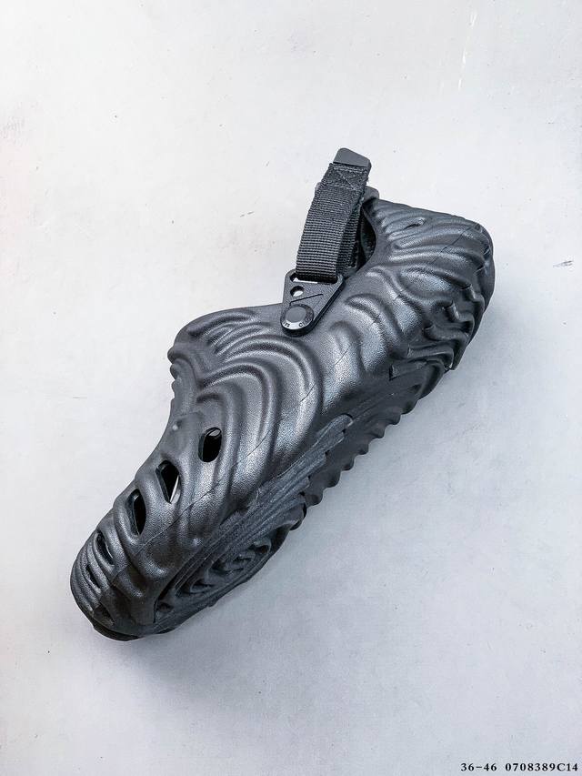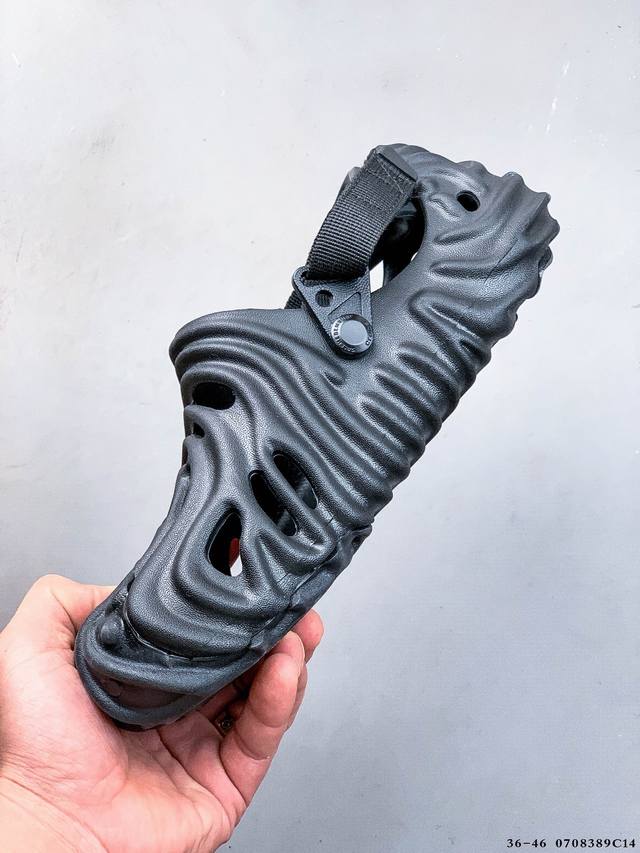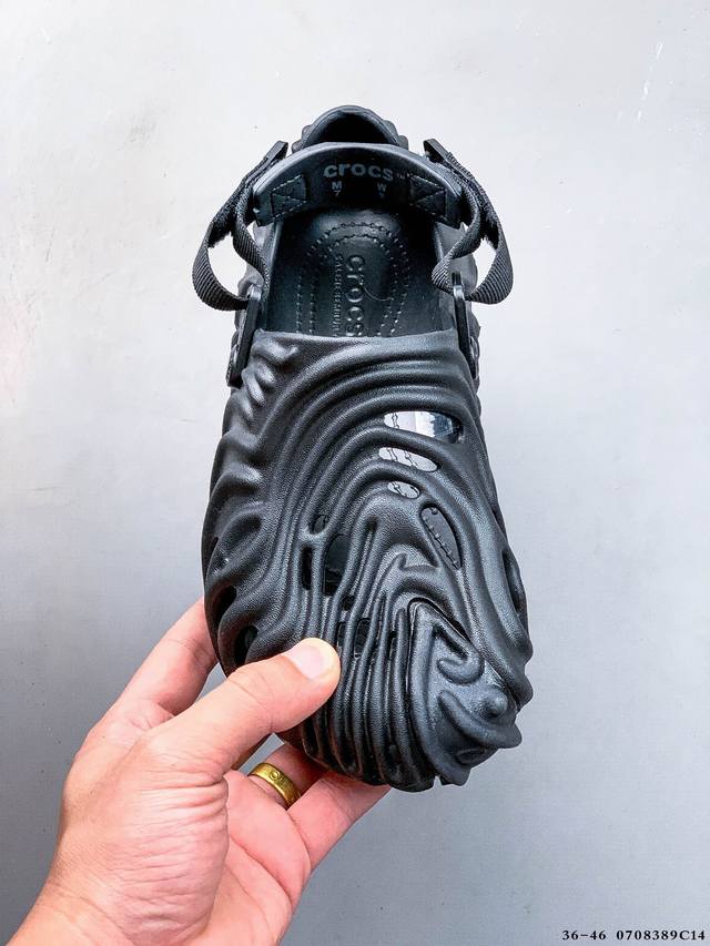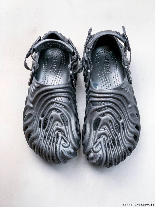 Crocs 卡骆驰 男女鞋原环保材料,采用高工艺Eva一次爆炸鞋底模 ,组合缓震鞋床材质,后跟魔术贴调节绑带,拖鞋凉鞋随意切换,外置防滑耐磨橡胶组合模块今夏必备单品,美国休闲鞋履品牌 卡骆驰联乘新晋国际知名鞋类设计师Salehe Bembury X Crocs Pollex Clog Cucumber 指纹式脊骨系列夏日沙滩室内外穿搭休闲涉水洞洞鞋凉拖鞋