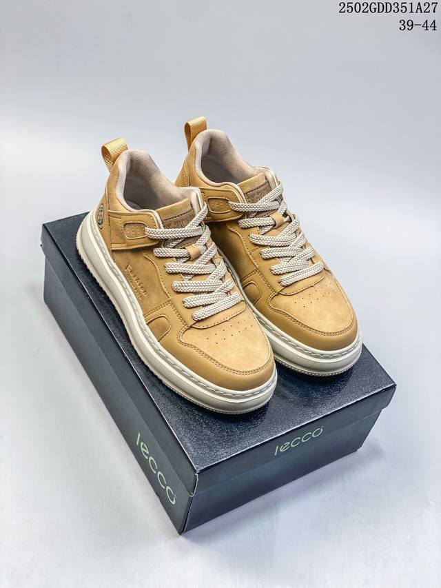 / Ecco爱步 广东原版透气 配备原版三件套 防尘纸 高弹大底 全头层牛皮 新款百搭休闲款 纯手工制成 鞋面走线工整 清晰质感 原单品质 拼接运动透气网布 采用E