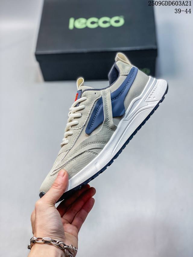 / Ecco爱步 广东原版透气 配备原版三件套 防尘纸 高弹大底 全头层牛皮 新款百搭休闲款 纯手工制成 鞋面走线工整 清晰质感 原单品质 拼接运动透气网布 采用E