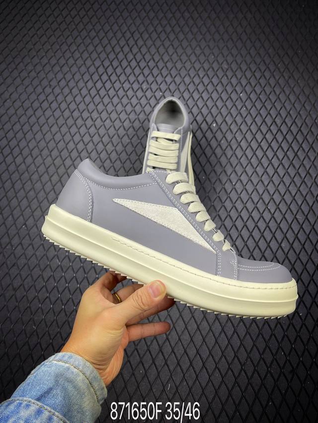 Fro欧文斯 Rickowens 一比一规格礼盒装,外加定制欧文斯保护盒配有日文、英文,双语种配件卡片虽然增加不了实质的成本,但是打磨产品的细节,再微小也会还原 尺码:35-46编码:871650F