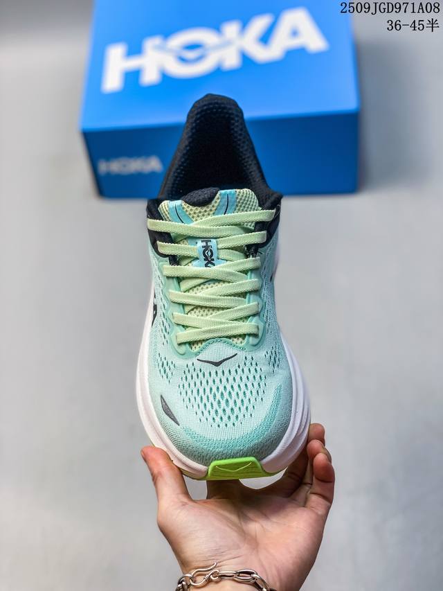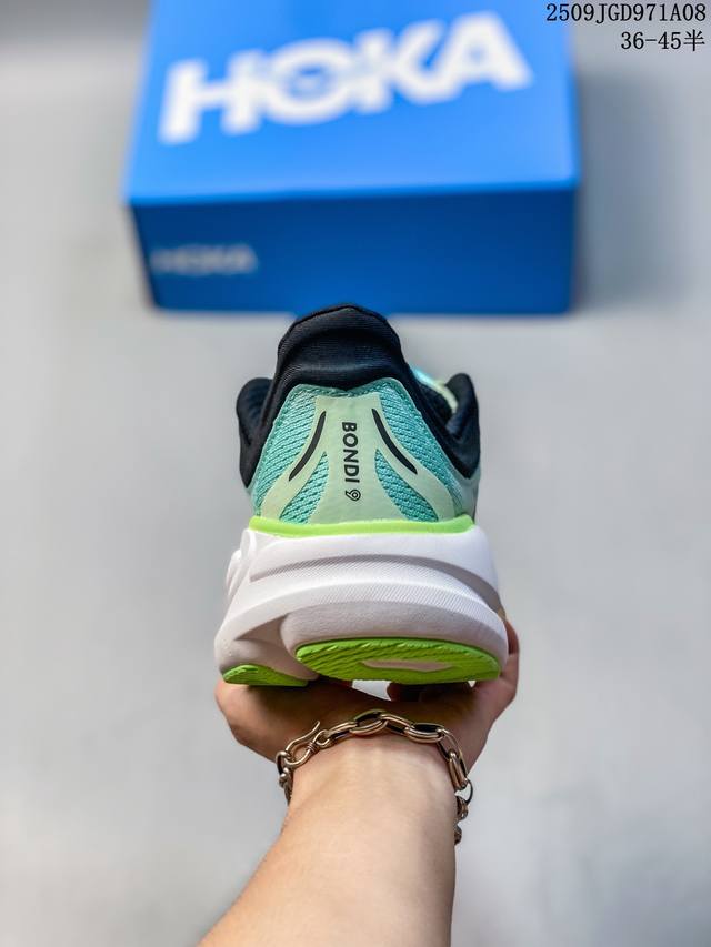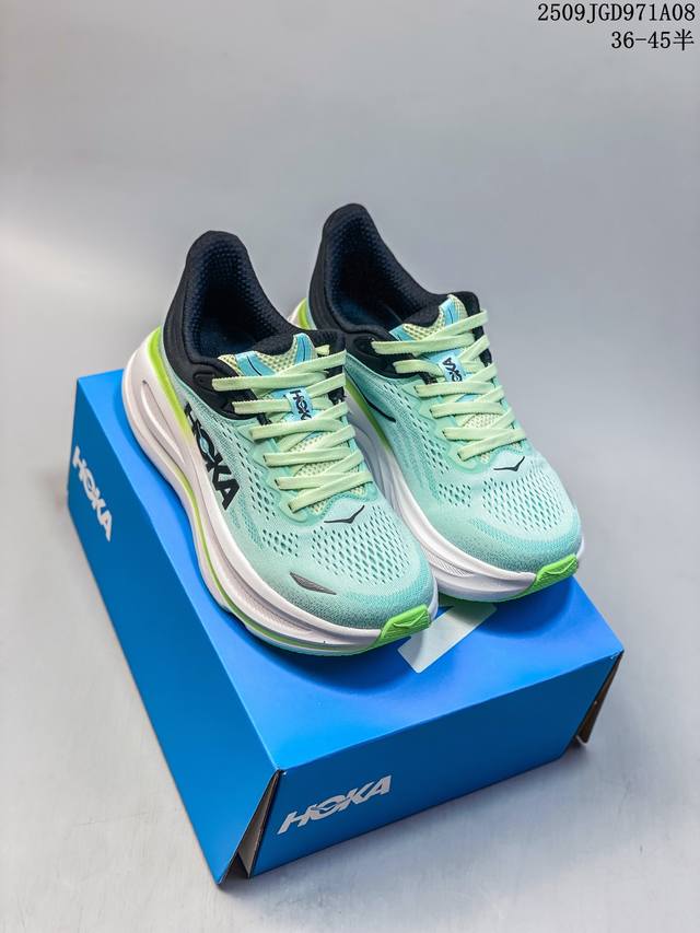 Hoka畅行无阻 Hoka One One Bondi 9 舒适百搭耐磨轻便 低帮跑步鞋 男女款。Bondi 9 最显著的变化在于其鞋底单元,原本扎实可靠的鞋底变得更加厚实,其厚度堪称 “近乎巨型尺寸”,对于钟情超厚底结构的消费者而言,无疑是最佳选择之一。在 Hoka 的新季展示会上,Bondi 9 以全新造型亮相,不仅外观升级,性能也得到官方宣称的显著提升。在重量方面,以美国男士 10 码为例,它比前代整体轻将近一盎司,实现了轻量化突破。这双鞋搭载 Hoka 最大缓冲中底,使鞋底增加两毫米高度,同时加持