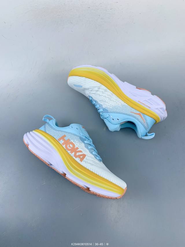 hoka M Bondi 8全新配色 这个品牌来自于新西兰的毛利语,Hoka表示大地,One One表示飞越,连起来就是飞越地平线,One One不是读作“万万