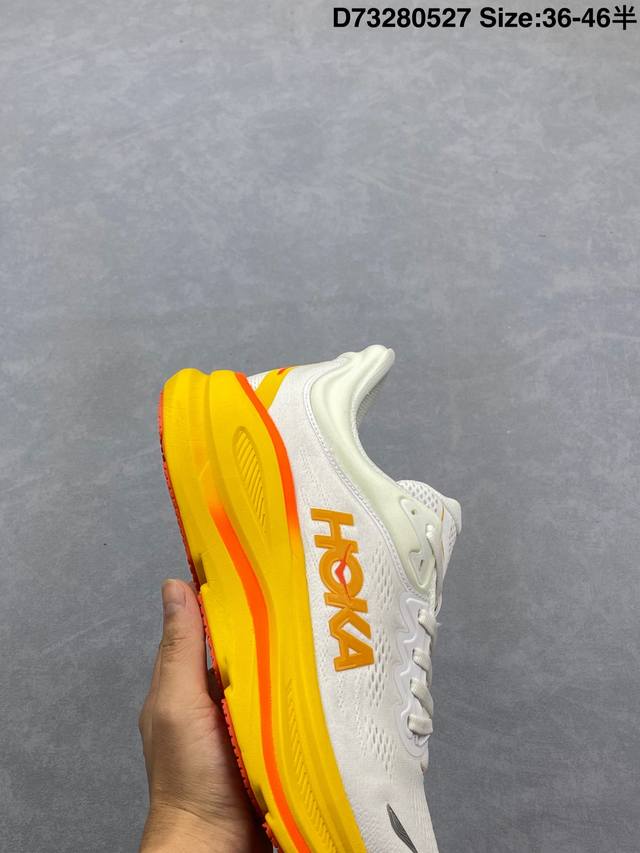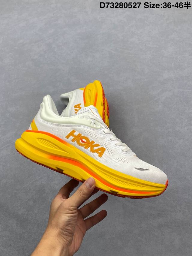 hoka M Bondi 9全新配色 这个品牌来自于新西兰的毛利语 Hoka表示大地 One One表示飞越 连起来就是飞越地平线 One One不是读作 万万 正确读法是 欧尼欧尼 Hoka在超厚中底方面的积累 让它跑在了其他厂商的前面 推出的跑鞋以缓震和轻量的优势 得到,众多跑者的青睐