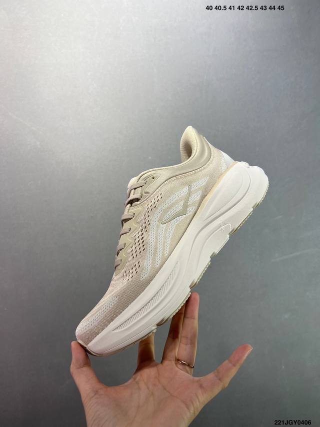 这个品牌来自于新西兰的毛利语,Hoka表示大地,One One表示飞越,连起来就是飞越地平线,One One不是读作“万万”,正确读法是“欧尼欧尼”。 Hoka在超厚中底方面的积累,让它跑在了其他厂商的前面,推出的跑鞋以缓震和轻量的优势,得到众多跑者的青睐