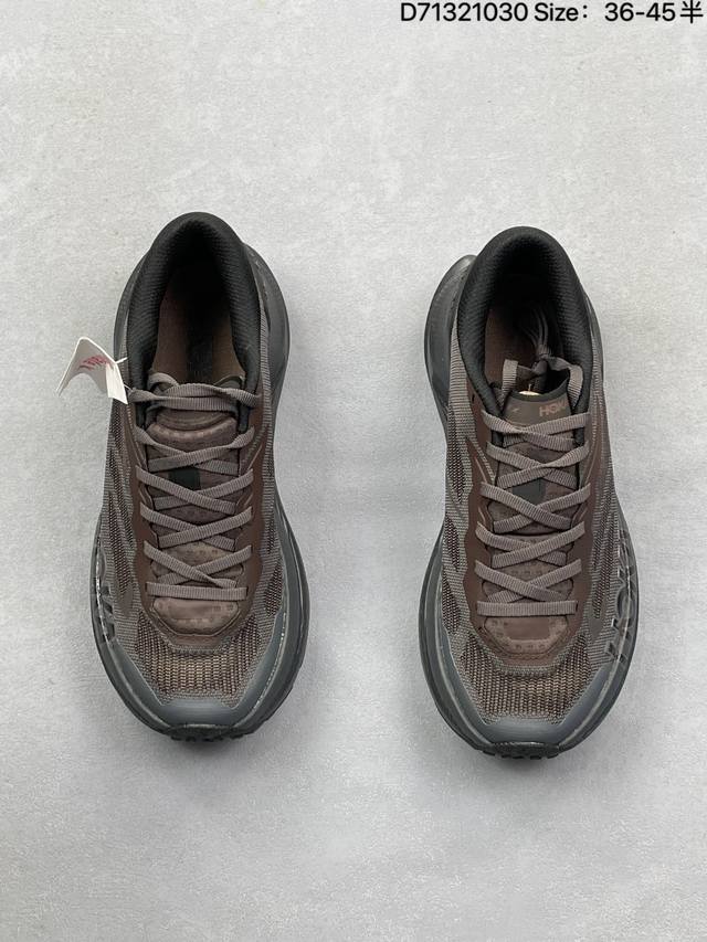 Hoka One One Mafate X 舒适百搭防滑耐磨 低帮跑步鞋 这款鞋在延续 Mafate 系列舒适性和缓震性能的基础上,进一步提升了缓震表现,并在中底中加入了碳纤维板,也正因如此有了名称中的 “X” 货号:1175208 Mtrt 尺码:36 36.5 37.5 38 38.5 39 40 40.5 41 42 42.5 43 44 45 编码:D713 30 Size:36~45B