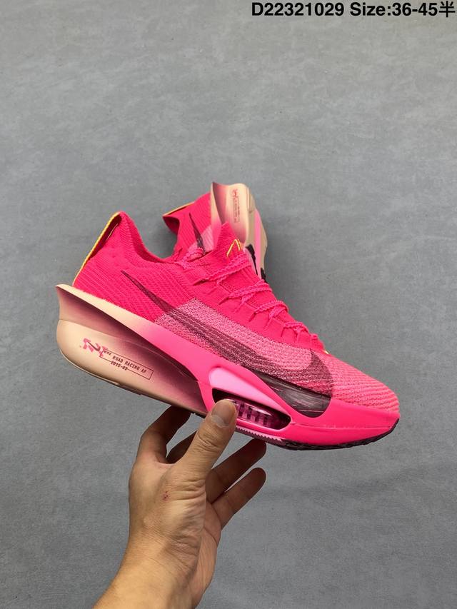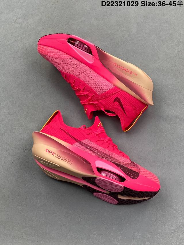 Nk Air Zoom Alphafly Next% 3 减震马拉松跑步鞋 首次通过一体式鞋底 替代了后跟和前足分离的设计 让双脚落地过渡更顺畅稳定 全掌 Zoomx泡绵拥有轻盈充沛的缓震弹性 确保在长距离奔跑中 充分发挥厚底跑鞋的回弹优势 鞋带边缘分布锯齿 不易松脱 更牢靠 且对鞋带孔进行了重新设计 减轻点位压迫 货号: Fd8315 104 X2S2 尺码: 36 36.5 37.5 38 38.5 39 40 40.5 41 42 42.5 43 44 45 编码:D223 29