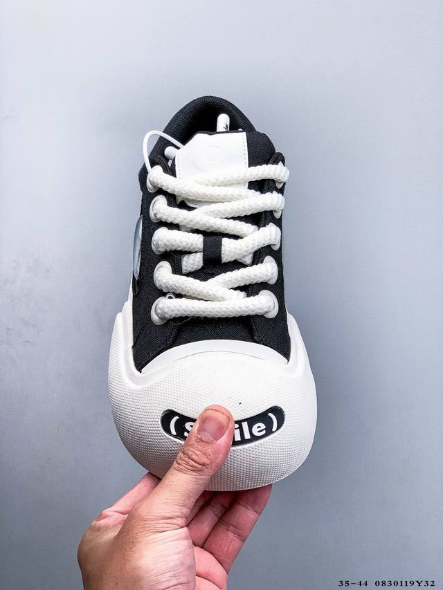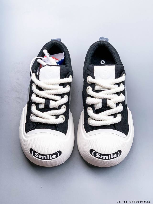 Ouder Smile增高情侣厚底丑萌圆头 开口笑 帆布鞋大头板鞋