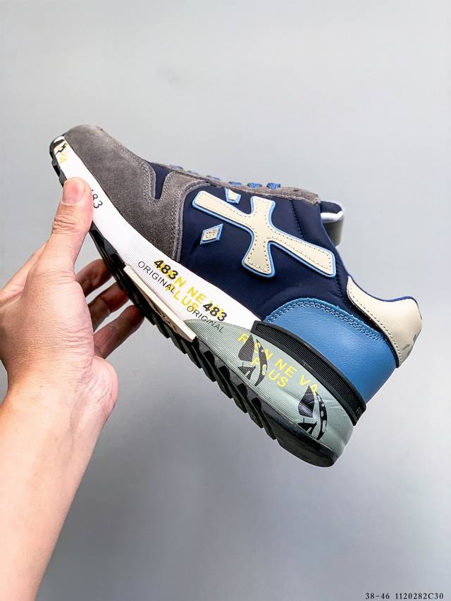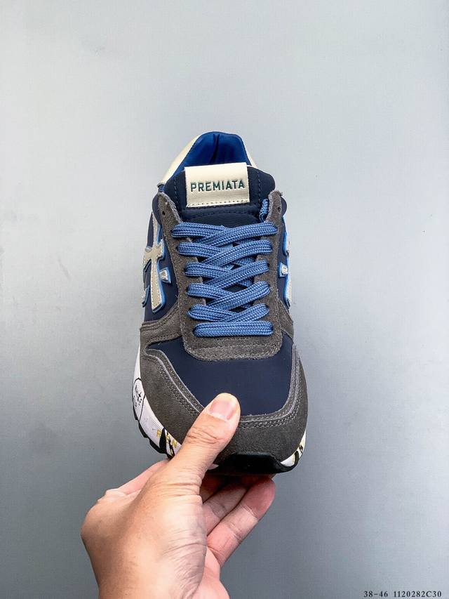 premiata 普拉米亚达 意大利鞋履品牌.打造出一款休闲 时尚运动鞋鞋面采用磨砂牛皮拼接尼龙面料、舒适透气的牛皮垫脚、原版超轻大底 1120282C30