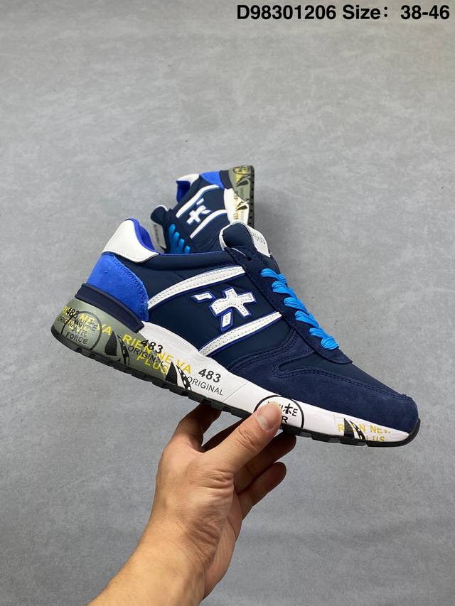 premiata 普拉米亚达 男鞋原单出口品质,采用皮革饰片组合固色翻毛皮与复合牛津布鞋面材质,内衬搭载皮革贴附缓震脚垫,中底Eva缓震组合耐磨橡胶鞋底意大利高奢鞋履品牌 普瑞米亚达 premiata Lander Trainers 兰诺系列低帮复古百搭休闲训练运动鞋 1058220 DDD 类型:男鞋 Ddd 码数:38-46 Ddd 编码:D98301206 DDD