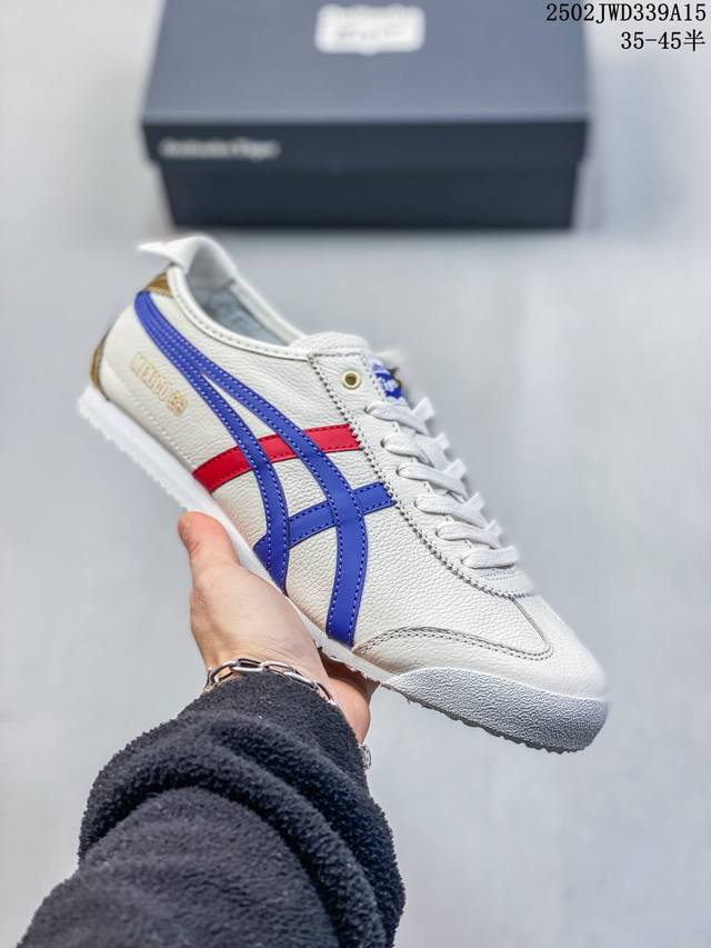 Sl版纯原 Asics Onitsuka Tiger Mexico 66 亚瑟士鬼冢虎复古经典板鞋 超成熟稳定的做工品控 原装全套纸板楦头开发 原汁原味 完美呈现版型 私模正确鞋底咬花纹路 一比一鞋头弧度高度鞋身弧度 绝不口嗨 细节品控鞋型随意秒杀市面 原档咬花纹路私模大底 一个单元有六个三角形 总体形拼接呈现花瓣状 官方四联吊牌 原装Ortholite轻量化鞋垫 原盒原配 质保卡 说明书 钢印防尘纸 纸板中底带钢印 乳胶组合鞋垫 支持全方位的对比专柜 产品从款式颜色造型上体现出追求舒适和细节的完美 鞋类