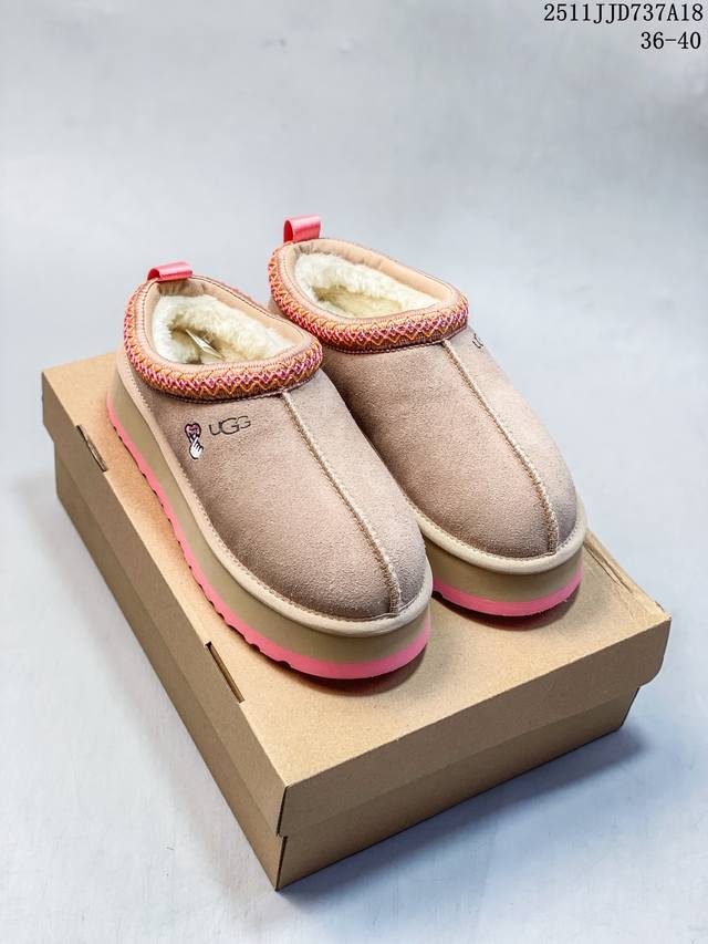 Ugg 厚底增高棉拖 雪地靴 俏皮可爱的百变造型家居拖鞋, 美国轻奢品牌Ugg 平底系列冬季雪地休闲保暖家居包头棉拖鞋。官方同步包装 检验标 材料采用原厂防污防水皮料 防滑耐磨轻翼大底 潮流百搭 英伦风 舒适拖鞋 秋冬休闲厚底增高时尚男女鞋 保暖性能十足 严寒季节保暖神器。 DDD 类型:女鞋 DDD 码数: 36 37 38 39 40 DDD 编码:Azgt1118Zzl DDD 11Jjd737A18 DDD