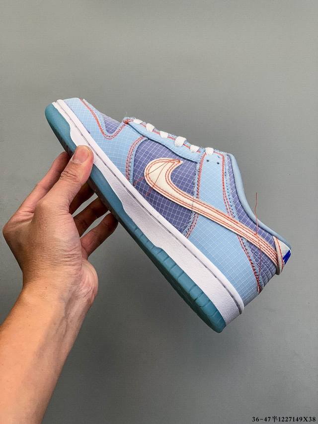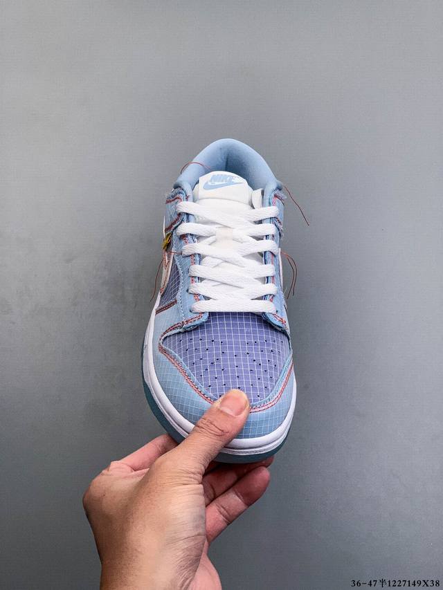 Union X Nk Dunk Low Un联名白紫 货号:Dj9649-500 鞋身的材质就使用了半透明格网防撕裂材质,并且车线全部使用到显眼的橙色,对比度极高!甚至还带有Ow联名系列解构风的味道!鞋子后跟处贴有圆形Union碎料标识,鞋身侧面仍然带有Union联名系列的经典 Un La 标签,半透明的大底也能看到隐藏的红色Logo Ddd 1227149X38 DDD