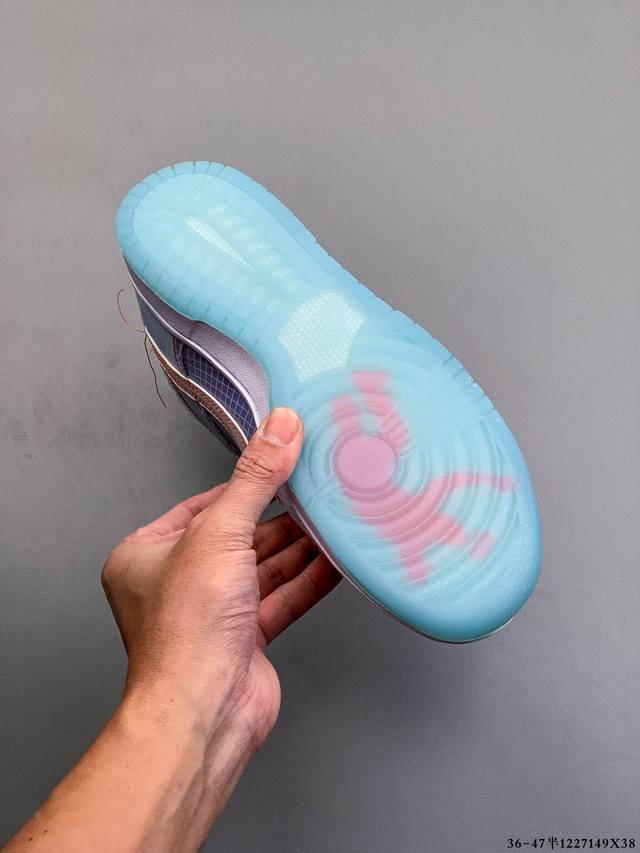 Union X Nk Dunk Low Un联名白紫 货号:Dj9649-500 鞋身的材质就使用了半透明格网防撕裂材质,并且车线全部使用到显眼的橙色,对比度极