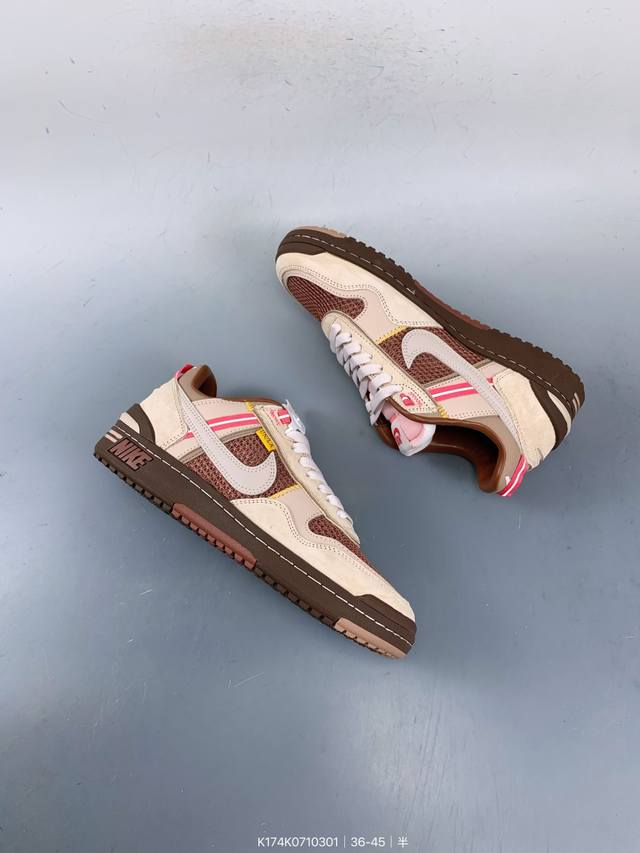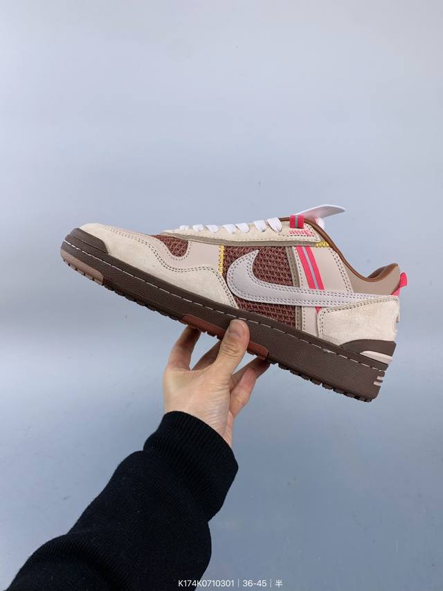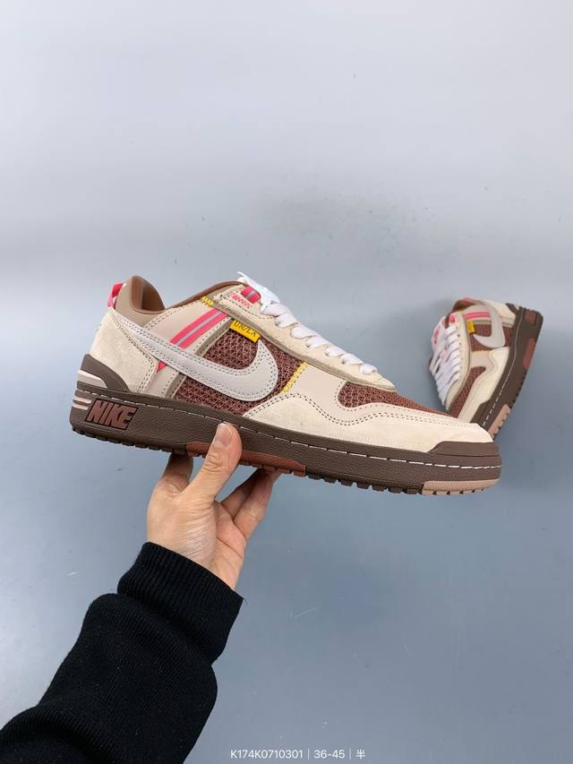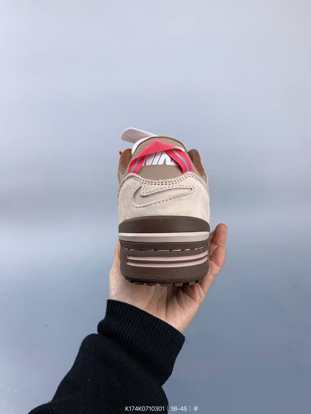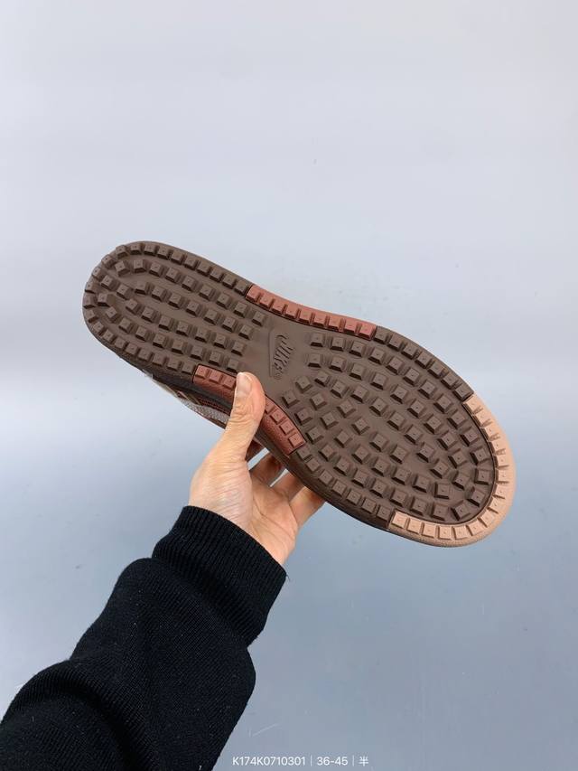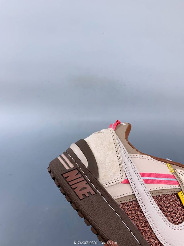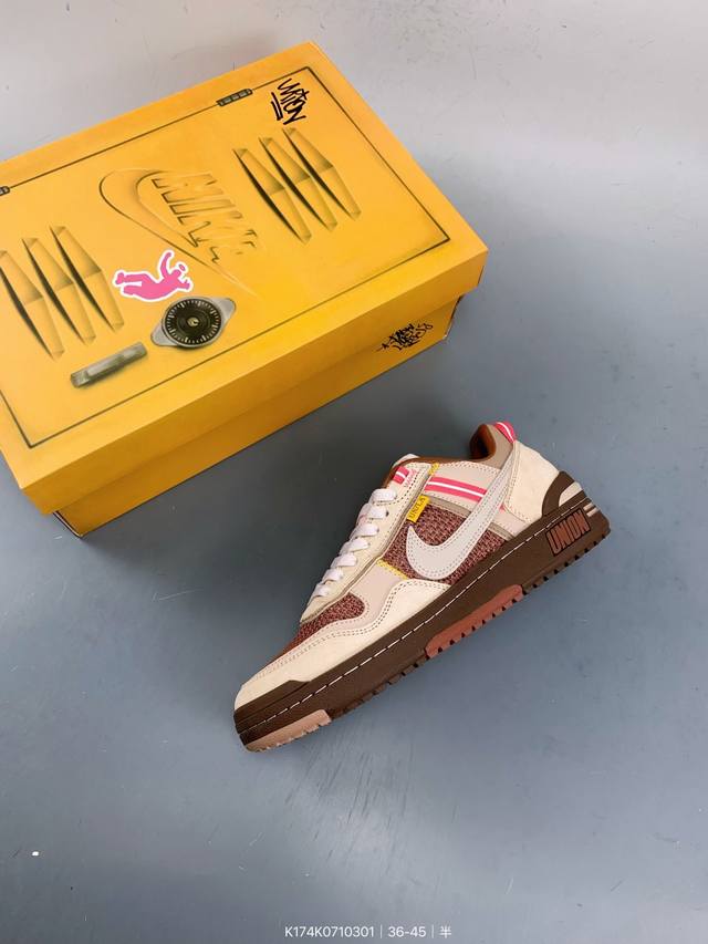 Union X Nk Field General 82 Sp 低帮复古联名篮球鞋 Un联名黑蓝 鞋身整体采用编织网眼为底 框架部分的麂皮材质营造出丰富的层次感 配色方面以深棕色为底色 搭配奶油色框架设计 Swoosh部分则以白色点缀 复古氛围拉满 Union标志性的Un La标签以及车线细节均得以保留 鞋舌部分也采用解构设计