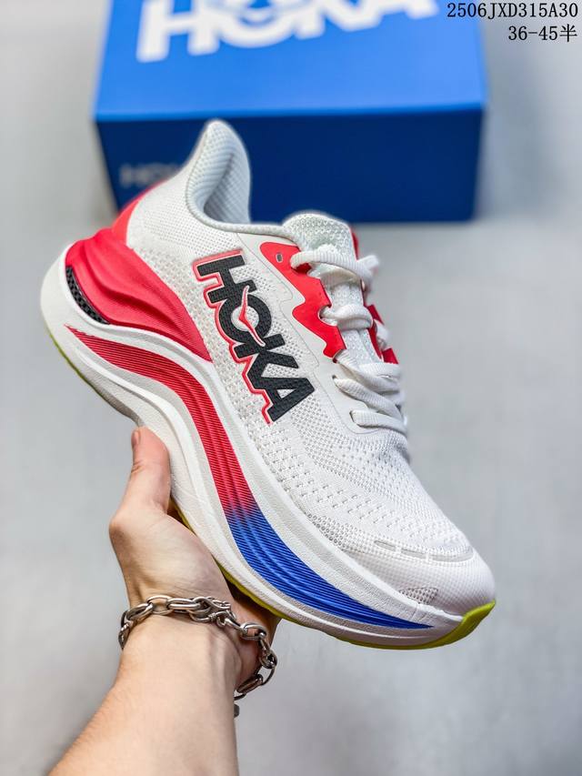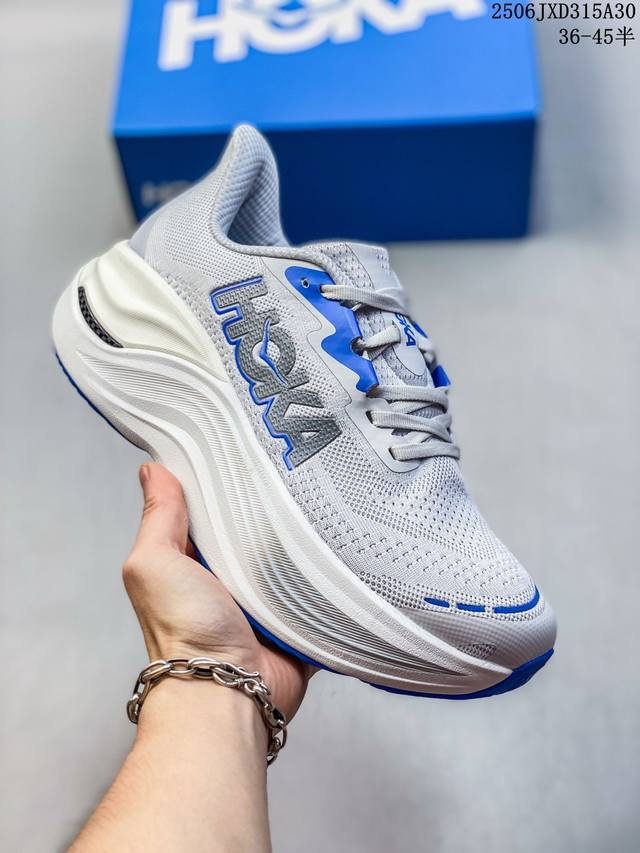 Z Hoka Skyward X Hoka采用双层超临界泡棉,中间夹层桥梁式碳纤维板,在缓震度极大化的同时,以碳板创造平衡的灵活柔软脚感,新奇超弹力体验。 Kyward X 碳纤维板、结合双层超临界泡棉配置全新中底 创造推进缓震新平衡 以大众跑者需求出发、享受跑步为理念,Hoka 以实验精神突破既有框架推出Skyward X,以双层泡棉搭配碳板,层层打造后跟高达48Mm 超级中底,打造推进与缓震机能兼具的极致平衡。