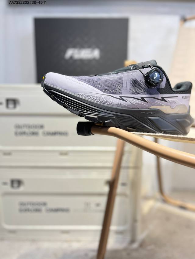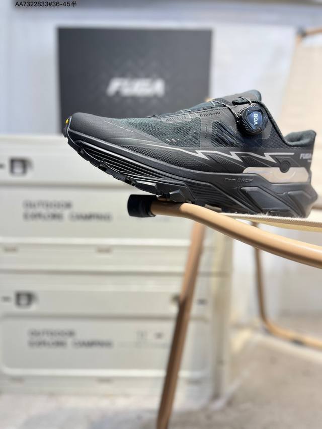 Boa适配系统 通过旋钮实现快速微调 精准贴合Vibram Megagrip Litebase 大底 125Mm超宽前掌 提供超强抓地力 可以轻松应对陡坡 湿滑路面等复杂的山野路况