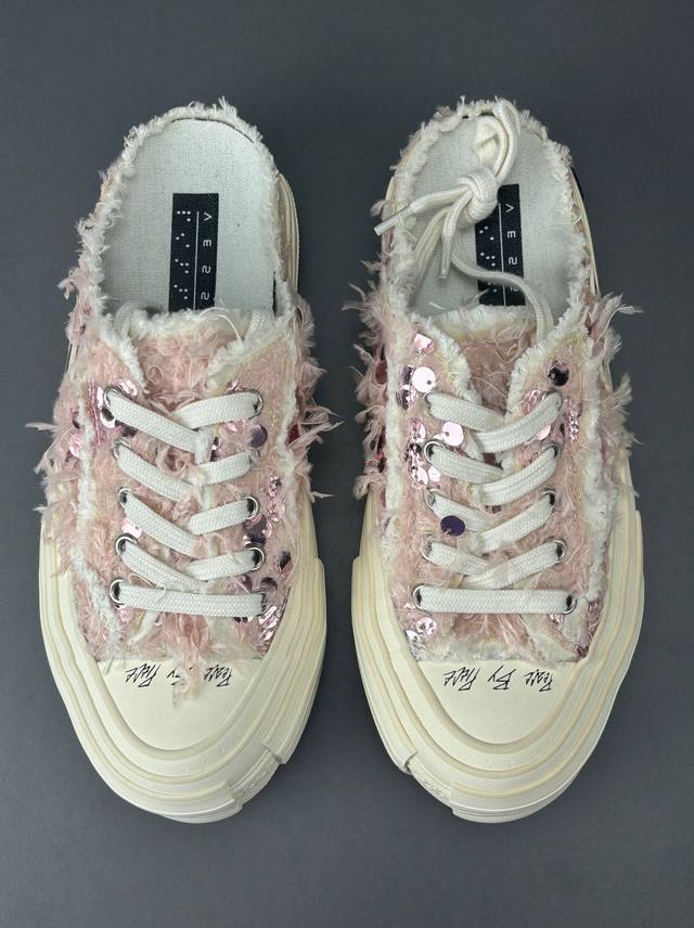 / 吴建豪系列Xvessel 天鹅之吻 长毛绒亮片半拖 低帮 帆布鞋 粉色 女款 尺码35-39