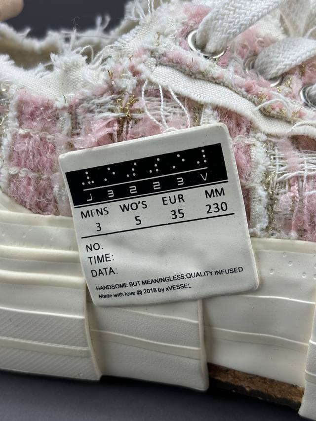 吴建豪系列Xvessel 粗花呢 防滑耐磨 低帮 帆布鞋 白粉色 女款 尺码35-39