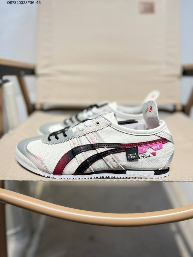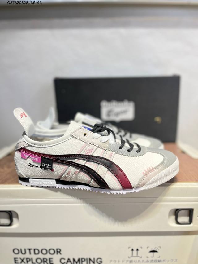 定制款# Onitsuka Tiger Mexico 66 Sd 鬼冢虎 墨西哥升级版系列低帮复古经典虎爪百搭休闲皮革慢跑鞋 采用软质粒面牛剖革组合翻毛皮饰条鞋面材质D507L Qs7320328#36-45