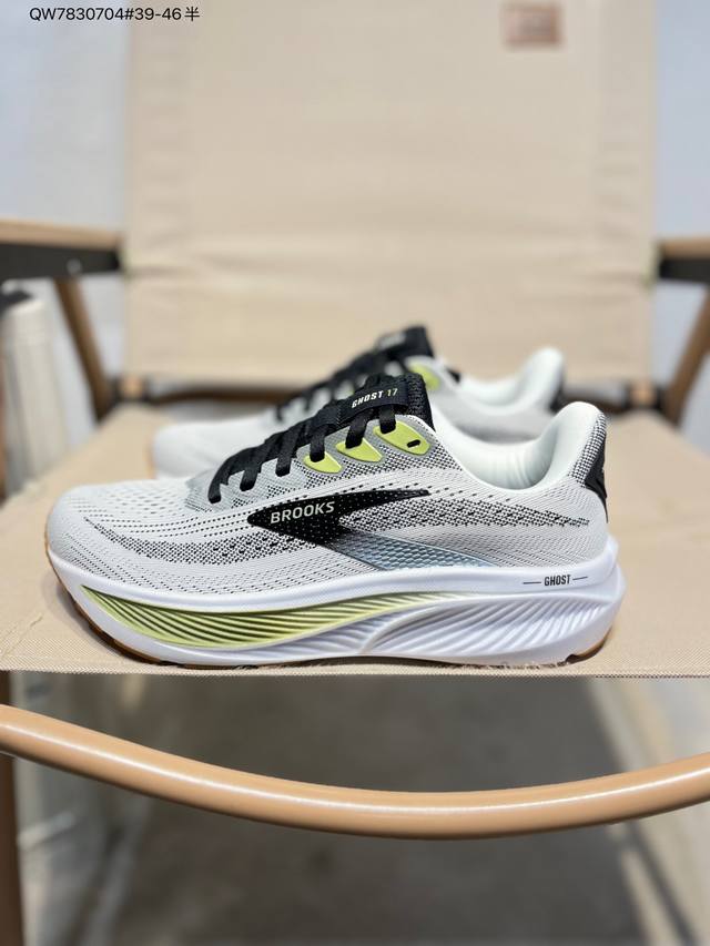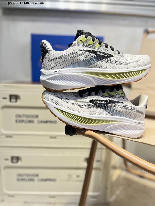 布鲁克斯Brooks Ghost 幽灵 17 经典鞋款厚底增高运动老爹鞋 Max 坐垫 搭载 Dna Loft V3 氮气超临界发泡中底,前掌厚度 26Mm、后跟 36Mm,配合 10Mm 坡差设计,实现软弹平衡。氮气注入形成密闭气囊结构,缓震性能提升 30%,能量回馈效率较前代提升 10%。实测显示,80Kg 跑者后跟触地可吸收 68% 冲击力,前掌蹬伸时回弹速度提升 15%。 采用双层提花工程网布,外层高密度透气网孔快速排汗,内层弹性支撑框架增强包裹性。前掌加宽 5Mm 楦型设计,搭配加厚记忆海绵鞋舌