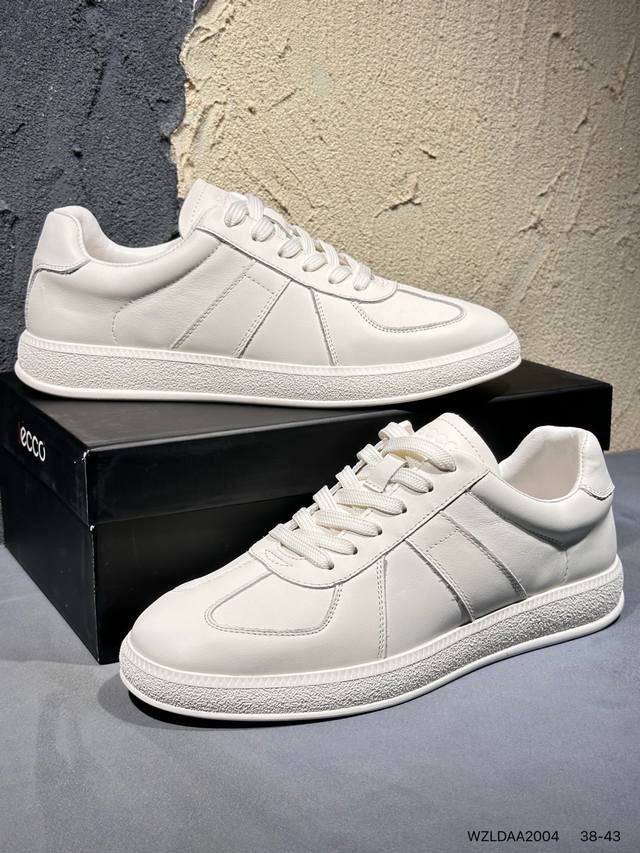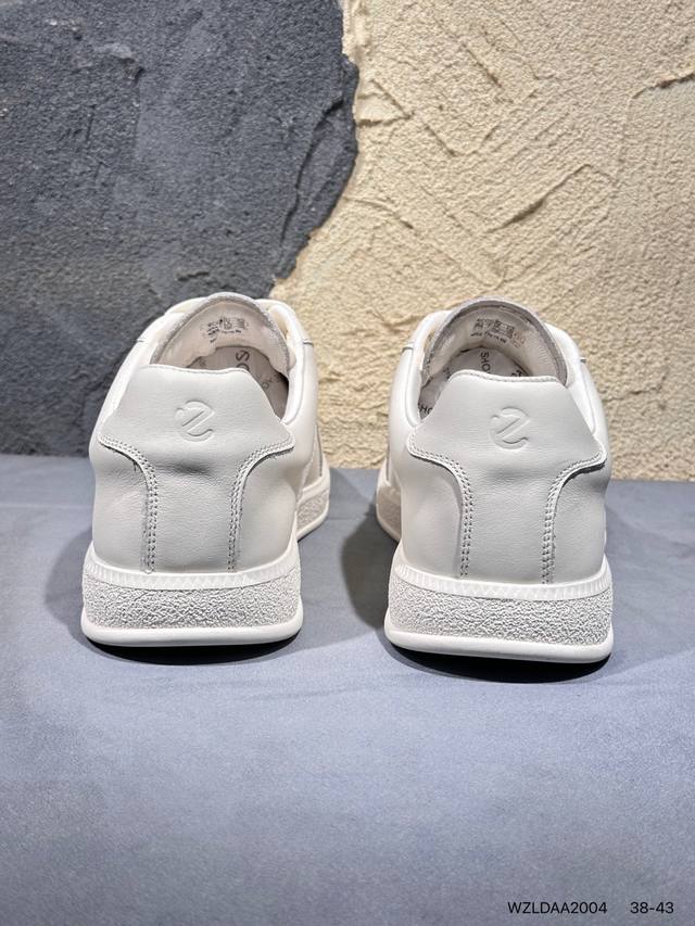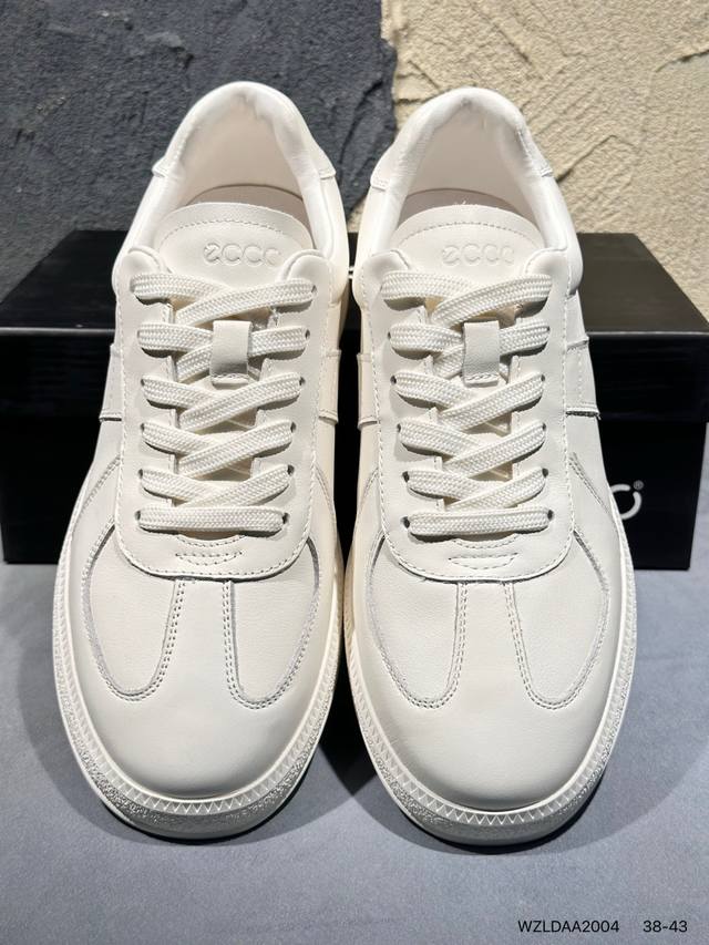 / 新品上市实拍 Ecco爱步 广东原版透气 配备原版三件套 防尘纸 高弹大底 全头层牛皮 新款百搭休闲款 纯手工制成 鞋面走线工整 清晰质感 原单品质 拼接运动透