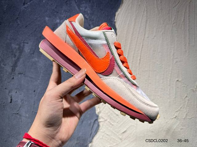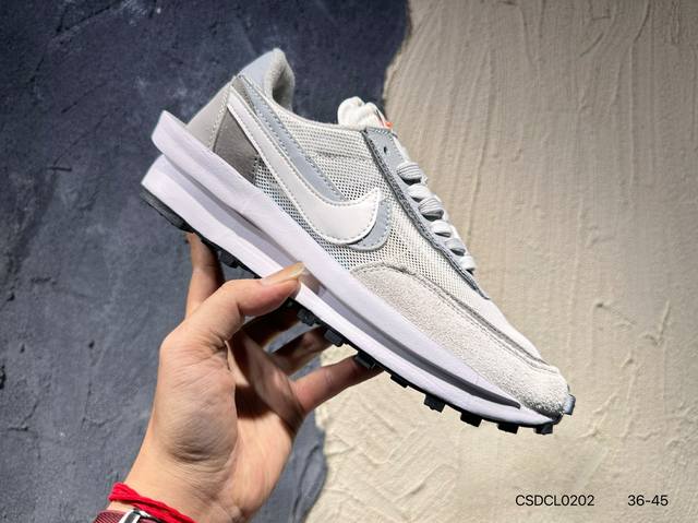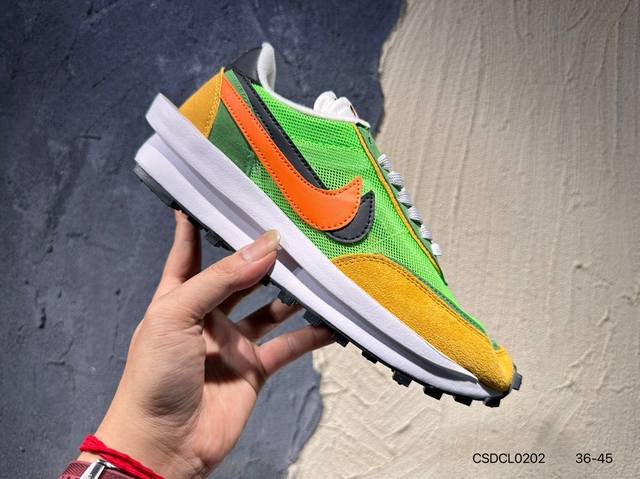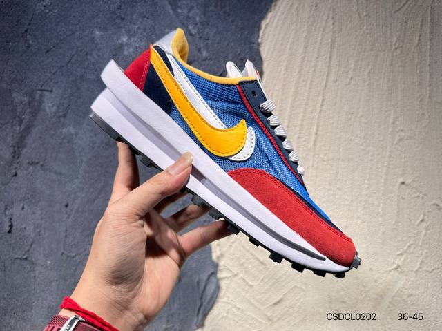 Sacai X N Ldwaffle ”Midnight Spruce And University Red“ 华夫2.0 黑蓝红解构 三方联名 采用了别致配色组合,鞋款整体以深杉木绿锦纶为基底,并且Swoosh和鞋身还以大学红点缀,以及形成鲜明对比;同时皮革覆面和翻毛皮拼接片混搭帆白中底,更为这款时尚单品注入一抹复古韵味;此外,鞋舌背面标签饰有联名品牌标志,后跟上方位置则彰显三方联名身份。此番合作,为传奇经典版型重塑新颖外观,造就又一人气力作。货号:Dh2684-001 400 Dh1