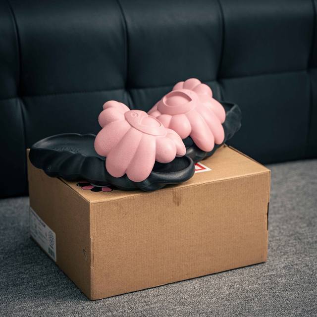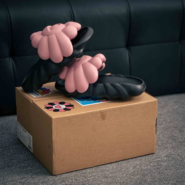 村上隆 Takashi Murakami 标志性太阳花风格 拖鞋 超扁平 Super Flat ”的艺术风格与美学理念蜚声国际,笔下标志性的太阳花伴随着笑脸不断启发着对于人、社会与自然的哲学思辨,以太阳花为灵感源泉的村上隆个人鞋履品牌 Ohana Hatake 将“花田”作为寓意,巧妙地将艺术与鞋展设计相融合,向大众传递出幸福与成长的积极理念,为时尚与艺术的跨界合作注入了新的活力与可能。