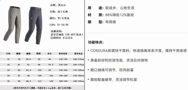 渠道优势 ! 外贸保真版 凯乐石 凯乐石Kailas T9 速干长裤 运动户外登山徒步Cordura耐磨快干防泼休闲裤 男款 尺码 31 32 33 34 35