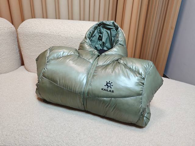 渠道优势 ! 外贸保真版 凯乐石 Kailas 凯乐石5000Gt 拒水1000蓬鹅绒连帽雪山羽绒服 25年版 男女同款 配色:暗泉绿 尺码:Xs、S、M、L、