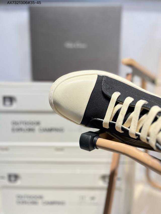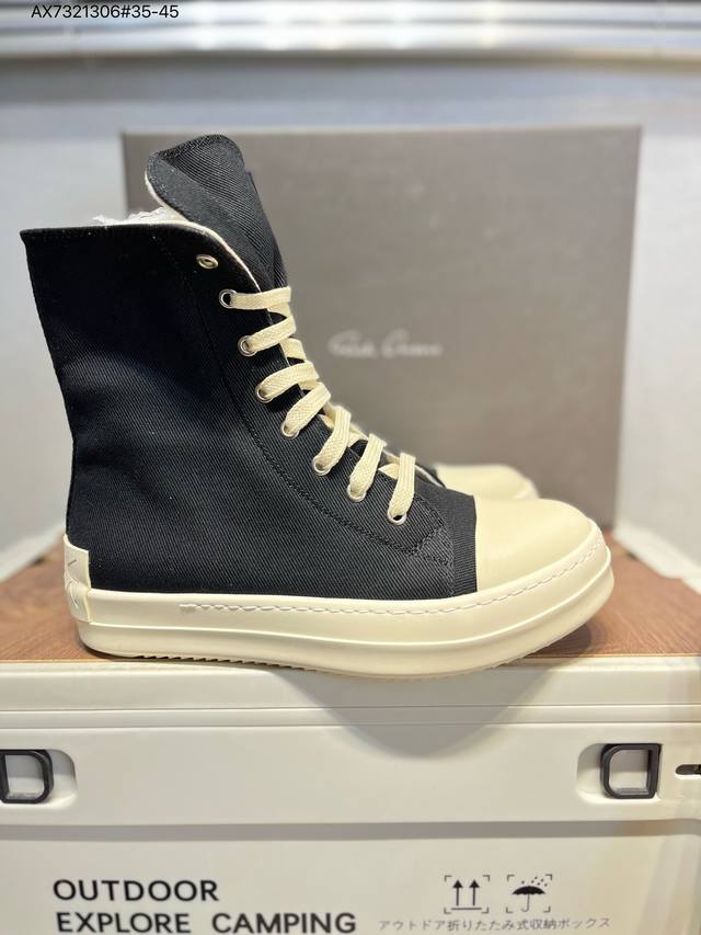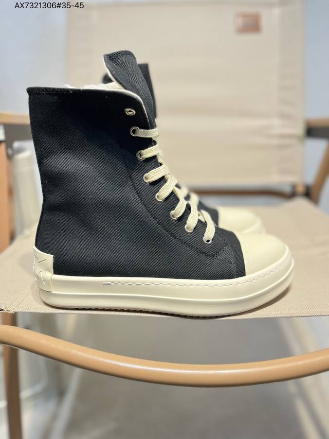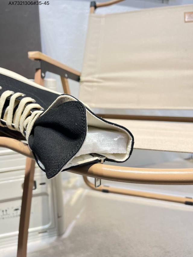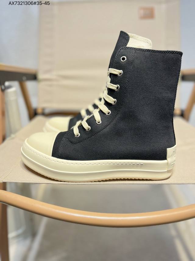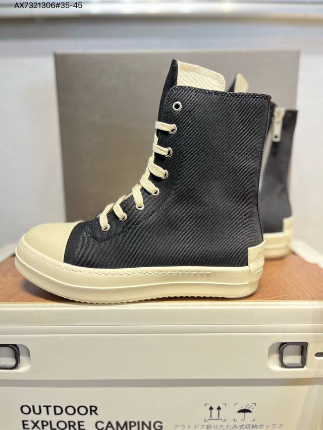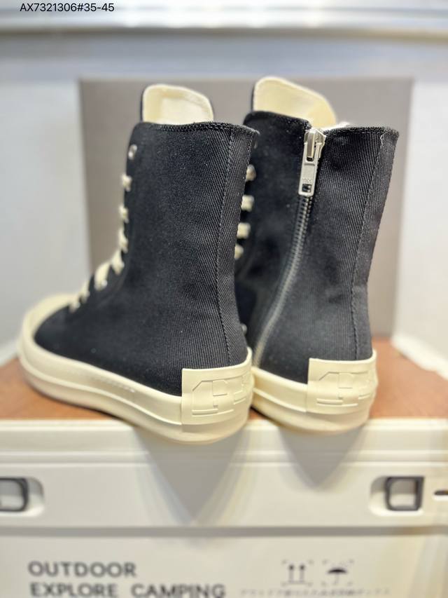 配置天地盖硬实礼盒#采用厚实斜纹牛仔帆布革鞋面材质#软仿皮内衬及缓震Pu乳胶鞋垫鞋垫#外置锯齿纹橡胶鞋底质感爆棚的主线大匡威,Ss暗黑风搭配神牌- 美国设计师品牌 瑞克 欧文斯Rick Owens Ss23 Edfu Runwa Canvas High-Top Sneakers Black Milk 跑道系列高帮包头式暗黑高街经典增高休闲运动厚底板鞋“23版帆布黑奶白宽鞋带”Rr01C4892 Lpow2 3174719 Ax7321306#35-45