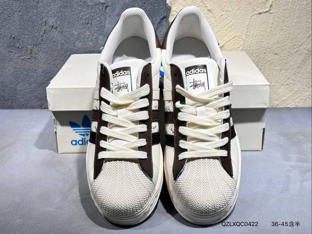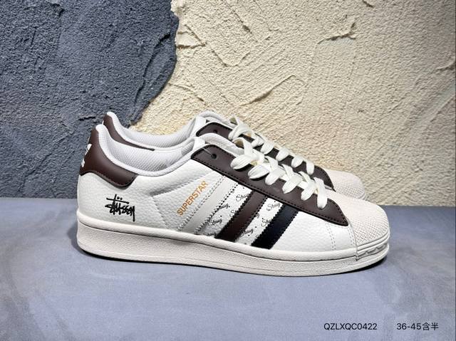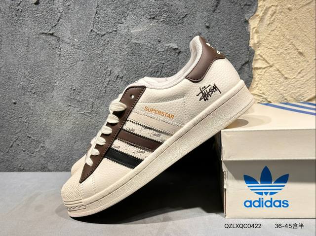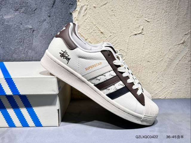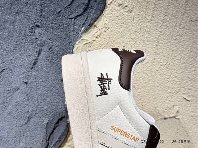 Ad Originals Superstar X Stussy 白棕采用全新头层拼接皮革材质后跟采用特色3D立体印字 渠道正品订单 诠释市场最高工艺水平全鞋进口头层皮料打造区别市面普通真标版本,进出专柜无压力 货号:Bz2502 Qzlxqc0422
