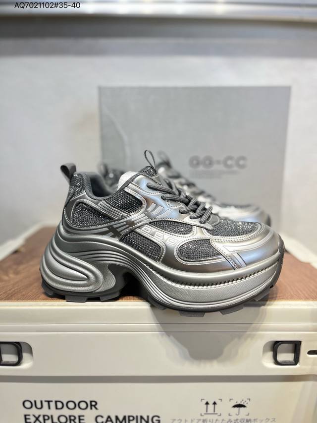 Gg-Cc Chunky Low白鹿同款独星球 2024新款Ggcc低帮复古厚底增高老爹鞋