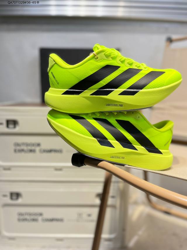 ad Adizero Evo Sl 阿迪超轻透气缓震跑鞋 以令人难以置信的138克重量,刷新了跑鞋轻量化的记录,阿迪在材料科学和工艺技术上的深厚积累 全新鞋款采