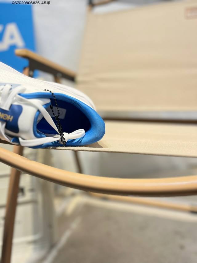 相比常规跑鞋 Hoka One One特别研发使用性能独特的几何形跑鞋中底