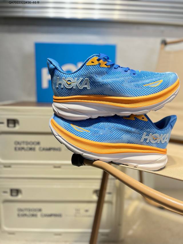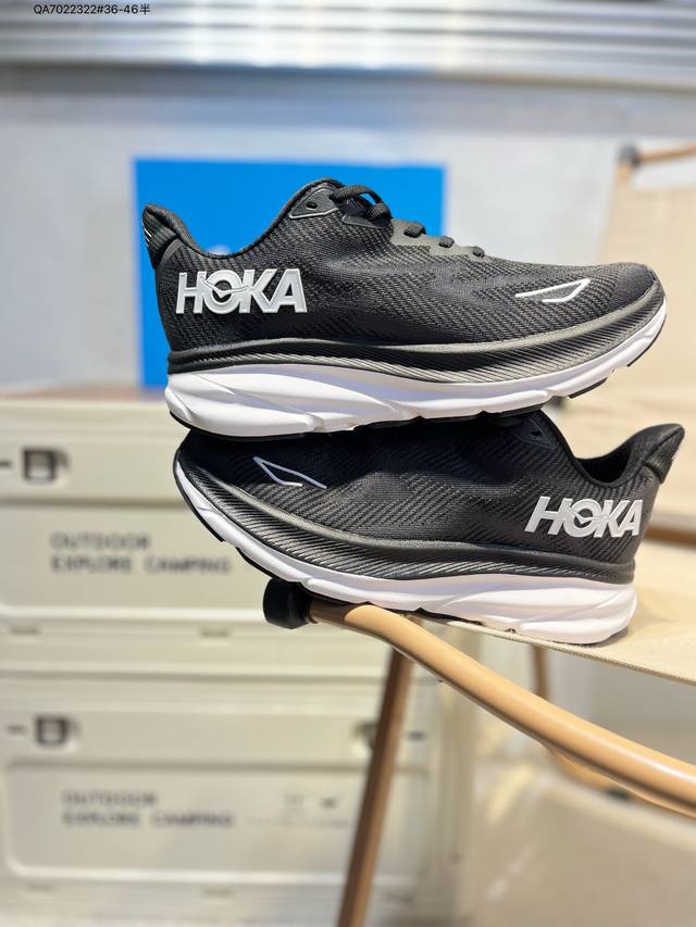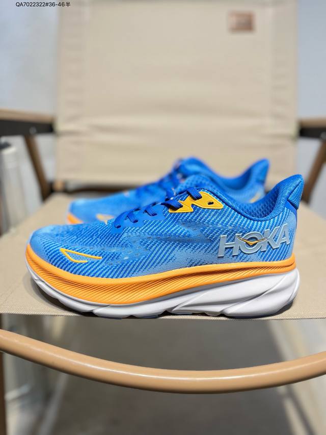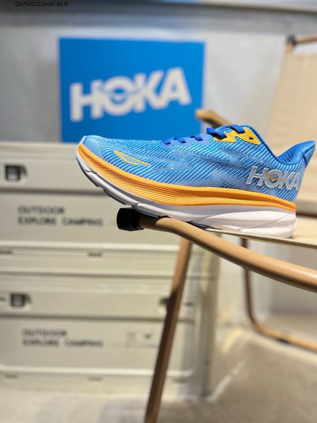 / Hoka One One M Clifton 9 机能缓震跑鞋 美国新兴跑鞋品牌,鞋面部分采用工程网眼面料,可以确保必要的透气性能。 货号:1127895 Qa