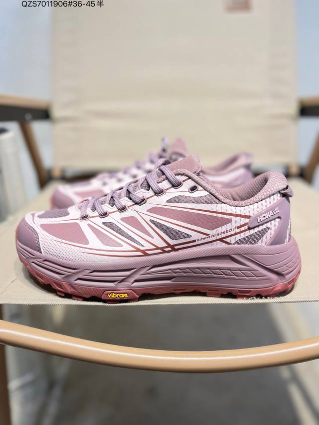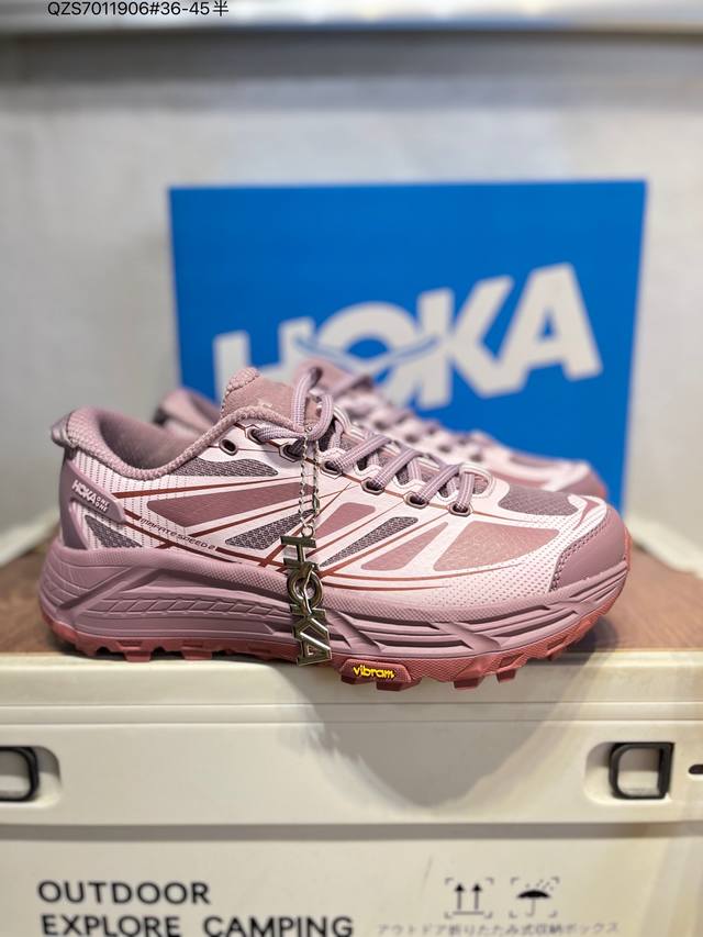 / Hoka One One Mafate Speed 2 Low 轻量低帮户外越野跑鞋 户外山脉越野轻量运动跑鞋 鞋面用轻的无缝架构,鞋带用了弹性不易松脱的扁宽弹