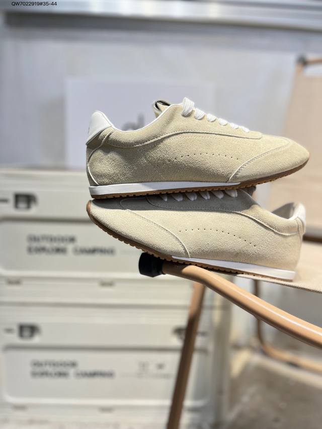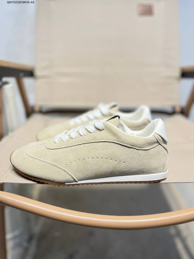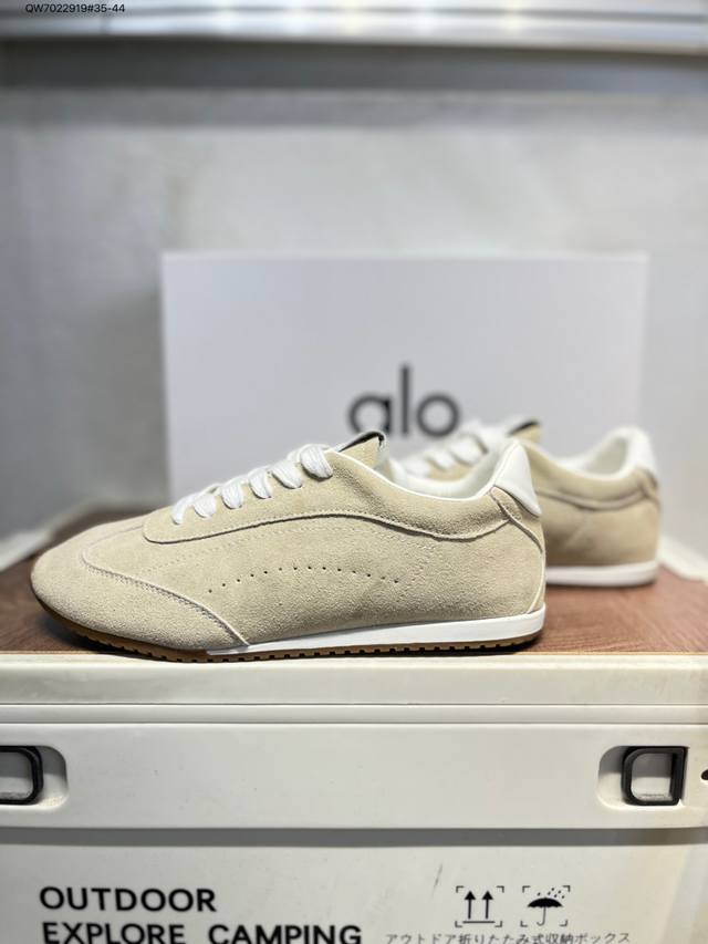 Lo Yogaalosunset新款运动鞋绒面革低帮薄底休闲鞋简约风 Ddd 采用柔软麂皮拼接透气内里,鞋底具备一定缓震性,适合日常通勤或周末出游。品牌目前主要面向亚洲市场,生产与设计团队位于韩国,注重细节打磨与季节性潮流趋势的结合。 Ddd 鞋面是细腻的麂皮材质,摸起来柔软又有高级感,搭配浅咖色系特别百搭,鞋底有一定厚度但不笨重,踩下去有轻微的回弹感,像是脚底被轻轻托住。最打动我的是它的设计细节 后跟微微收窄的线条,让脚踝看起来更修长,搭配裙子或牛仔裤都很有氛围感。A0590U Qw7022919#35