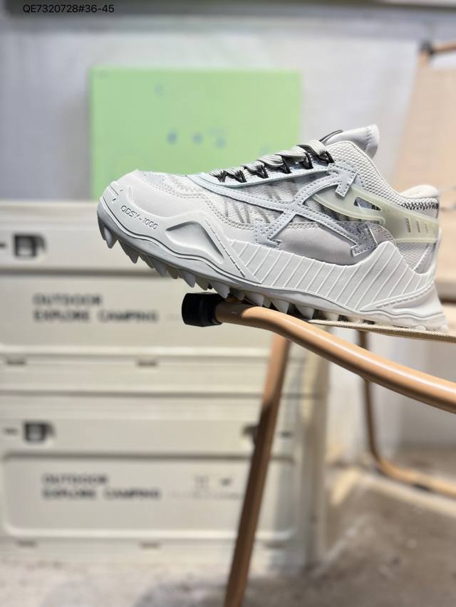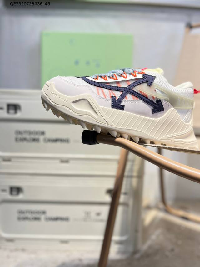 Off潮牌Ow老爹鞋White Odsy 箭头增高登山厚底情侣增高休闲运动鞋 Ddd Odsy-1000 Chunky Arrow复古跑鞋系列 Ddd 帮面:网纱十革料 脚垫:发泡缓震Eva物料 Ddd 内里:网织布 Ddd 鞋底:Eva发泡+橡胶 Ddd 受90 年代至2000 年代初的厚底跑鞋影响,该 Ddd 系列融合了90年代复古跑鞋美学、解构主义设计, Ddd 旨在打造莱具潮流厲性和运动功能的高端鞋款,在经 Ddd 典跑鞋轮廓上加入现代材质Owia180S21Fab0010505 Qe732072